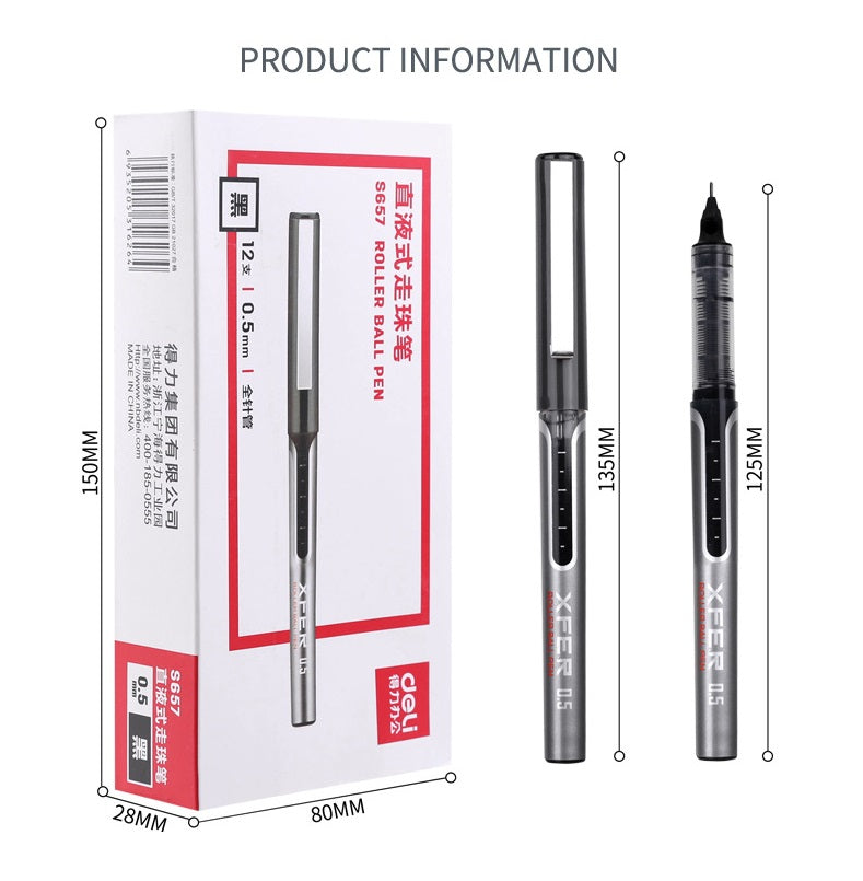 DELI S657 ролер с течни мастила, комплект от 12 броя, 0.5 мм