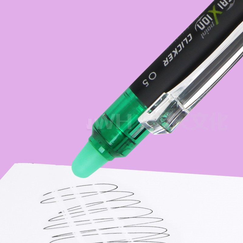 Революционното мастило „Frixion“ е термосензитивен гел. Цветът на мастилото става безцветен („изчезва“) поради топлината, генерирана от триенето при търкане на гумения капачка на химикалката върху хартията. Писането се изтрива без остатъци. Химикалките от серията Frixion могат да пишат многократно на едно и също място с един и същ химикал.