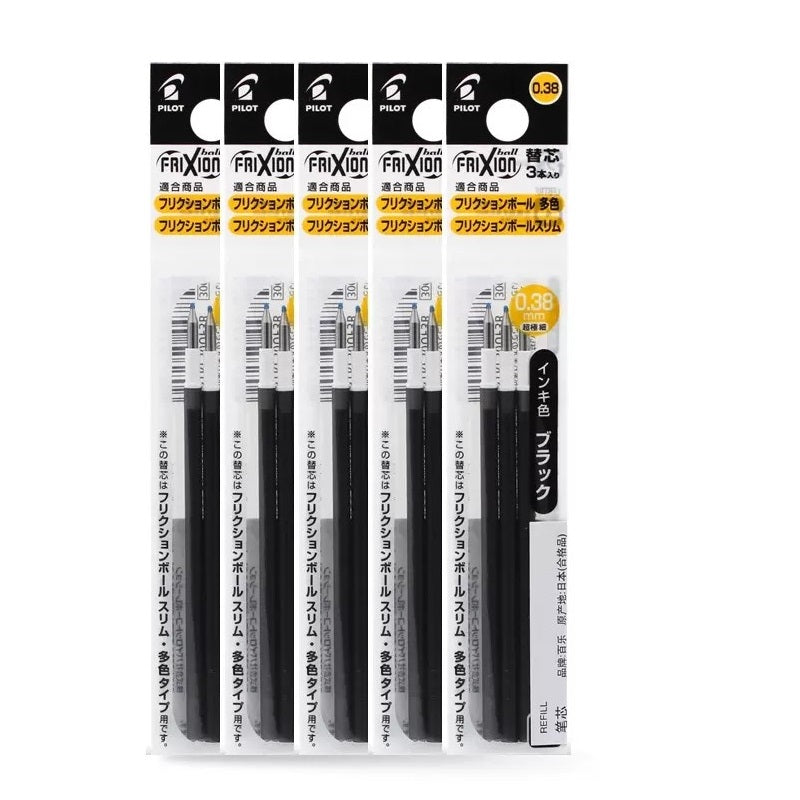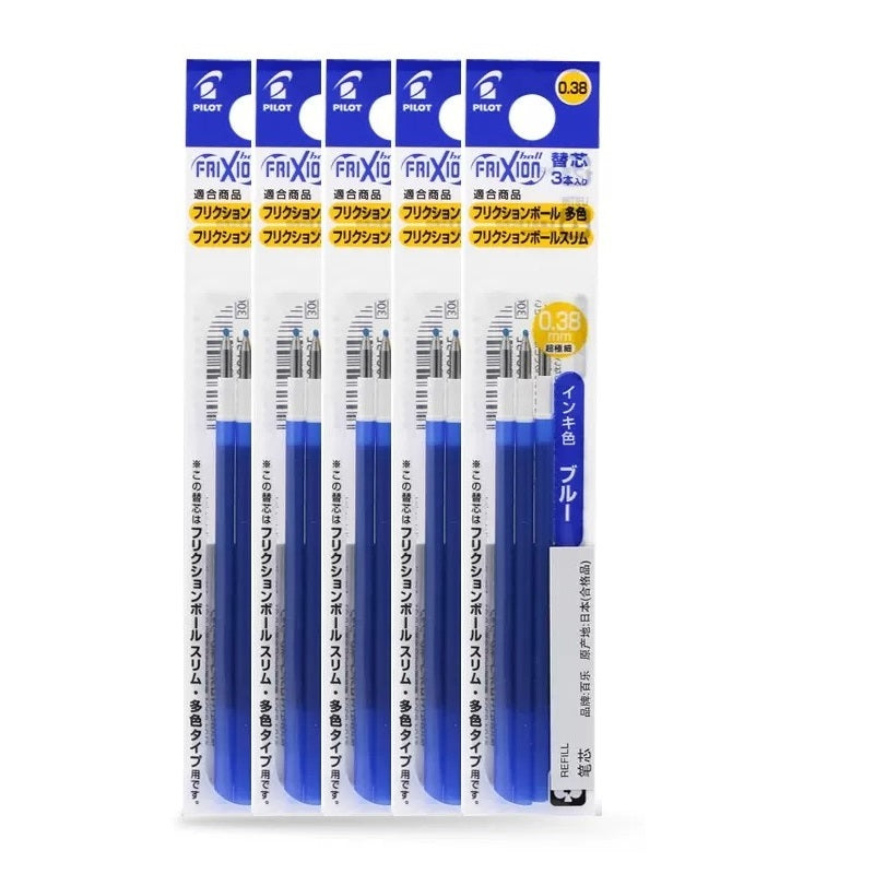 Японски пълнител за писалка Pilot FriXion Ball Slim 0.38 мм комплект от 15 броя - червен/син/черен