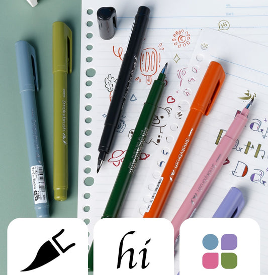 Master the art of beautiful lettering with authentic Japanese and Chinese brush pens. Whether you're practicing modern calligraphy, creating manga art, or exploring watercolor techniques, our collection offers flexible nylon and natural hair tips paired with vibrant, blendable inks. Each pen is designed for precise control and expressive strokes, making them perfect for artists of all levels.