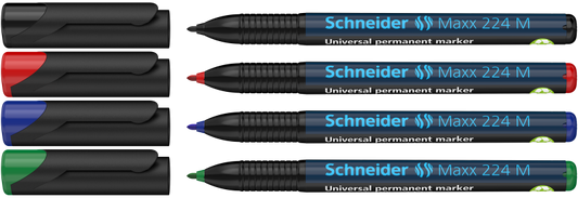 Schneider Maxx 224 M Permanent Markers 1.0mm 4 Pack Universal permanent marker, writing colour black/red/blue/green¡...