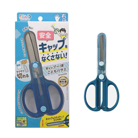 Kutsuwa Children's Scissors with Integrated Sliding Cap Safe, one-piece slide cap prevents cap from getting...