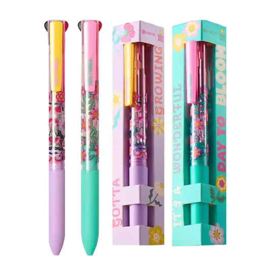 KACO 3-in-1 Multi-Pen – Black/Red Ballpoint + 0.5mm Mechanical Pencil, Floral Design, Bonus 4 Black...