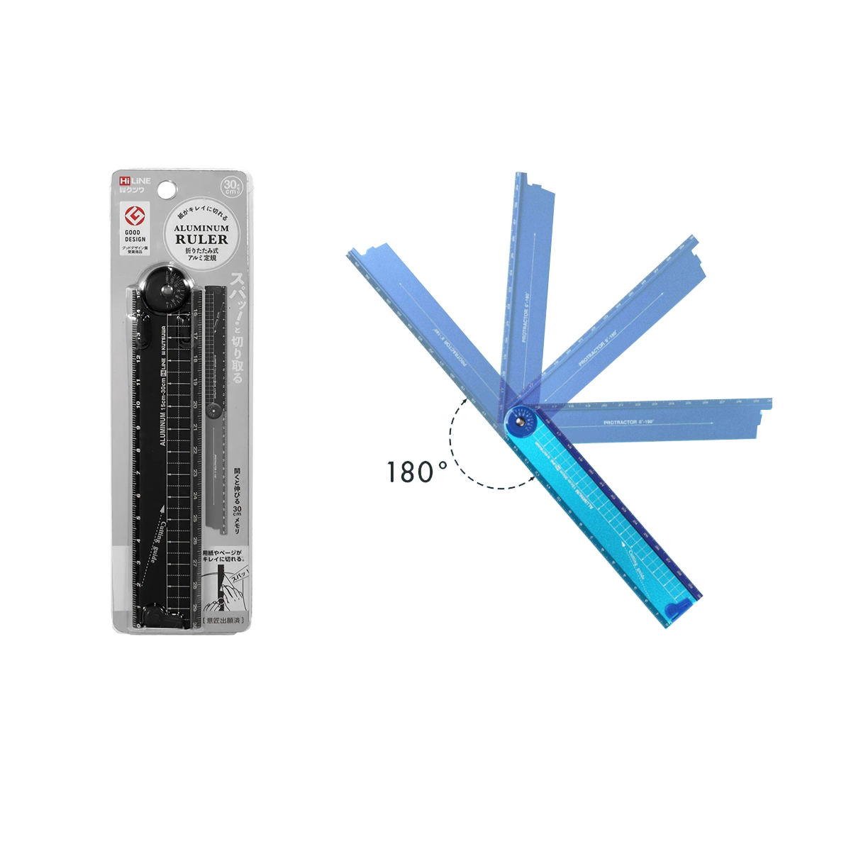 Kutsuwa HiLine skládací hliníkové pravítko je oceněný multifunkční nástroj. Rozkládá se na 30cm pravítko, lze ho použít jako úhloměr a dobře poslouží i při stříhání papíru.