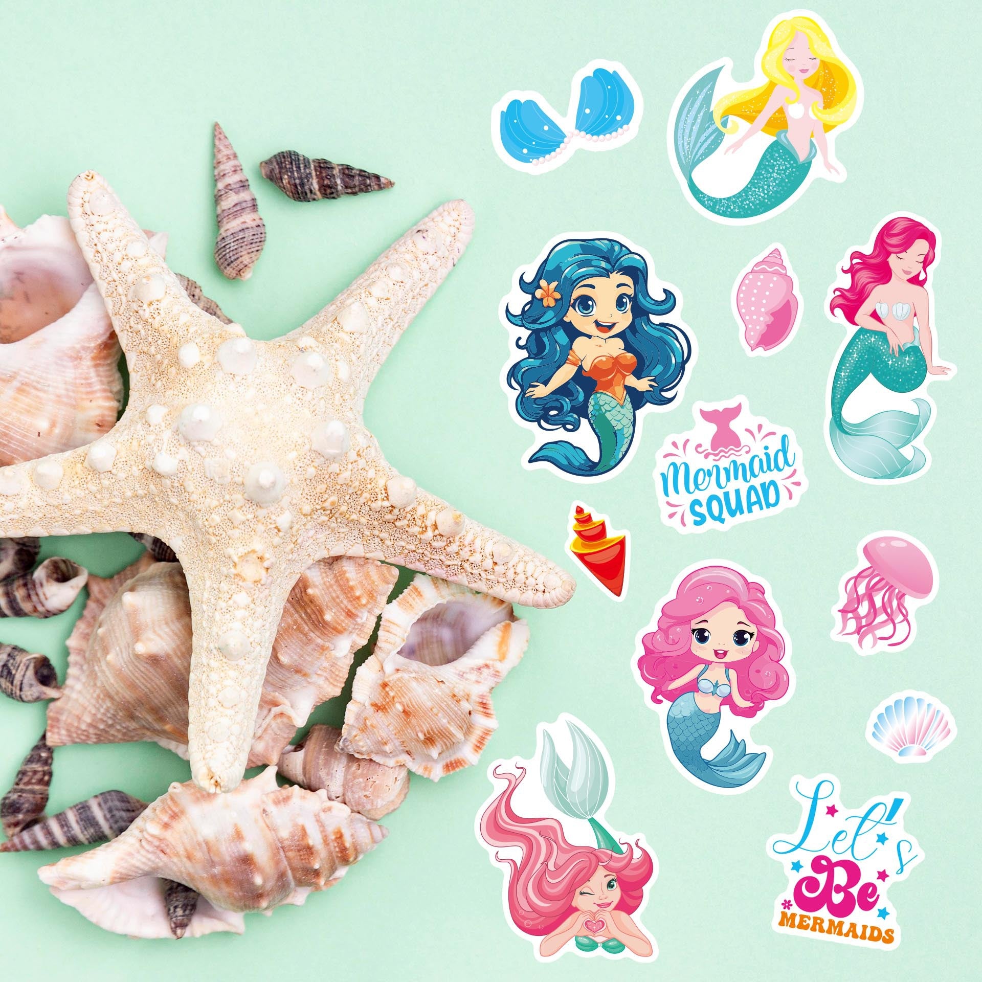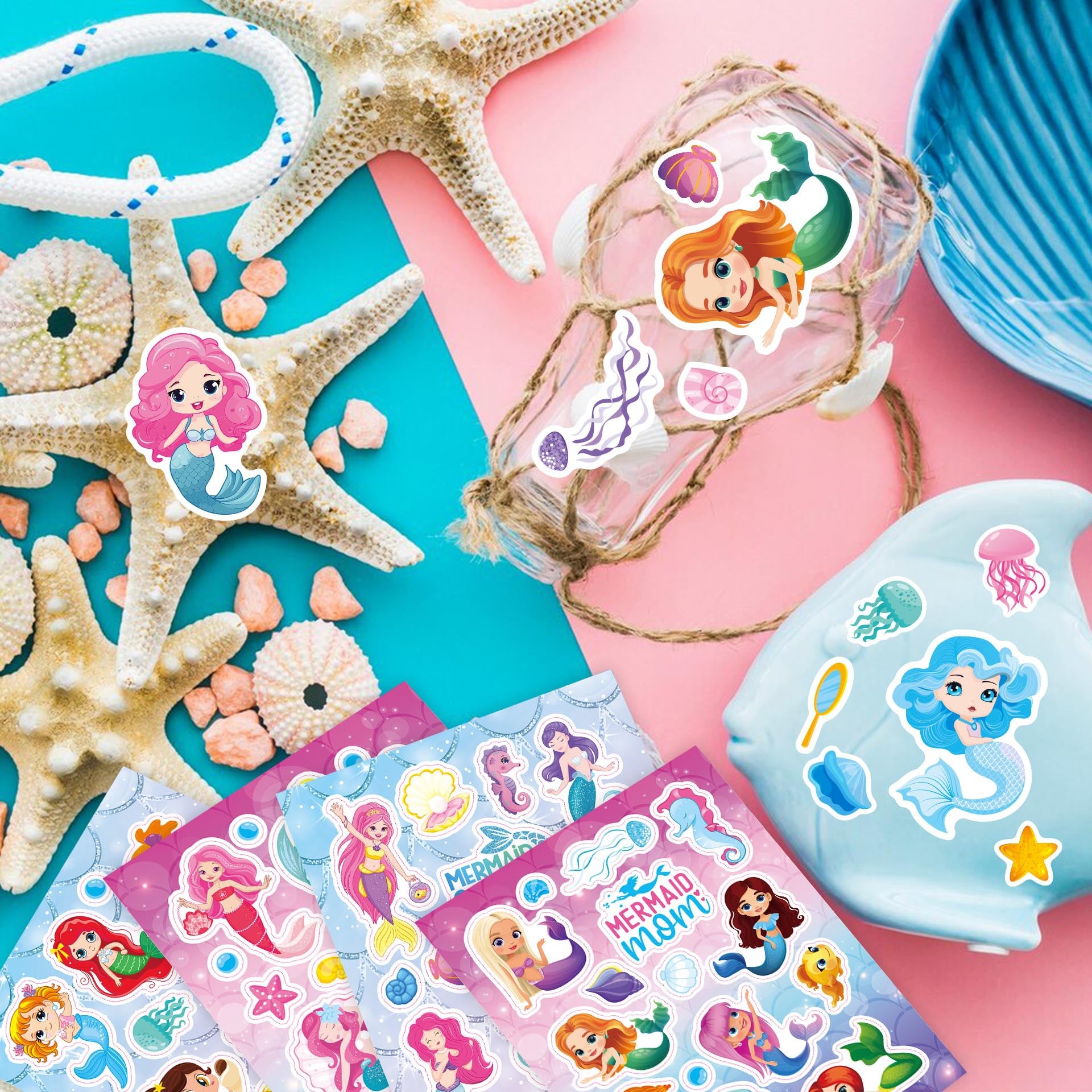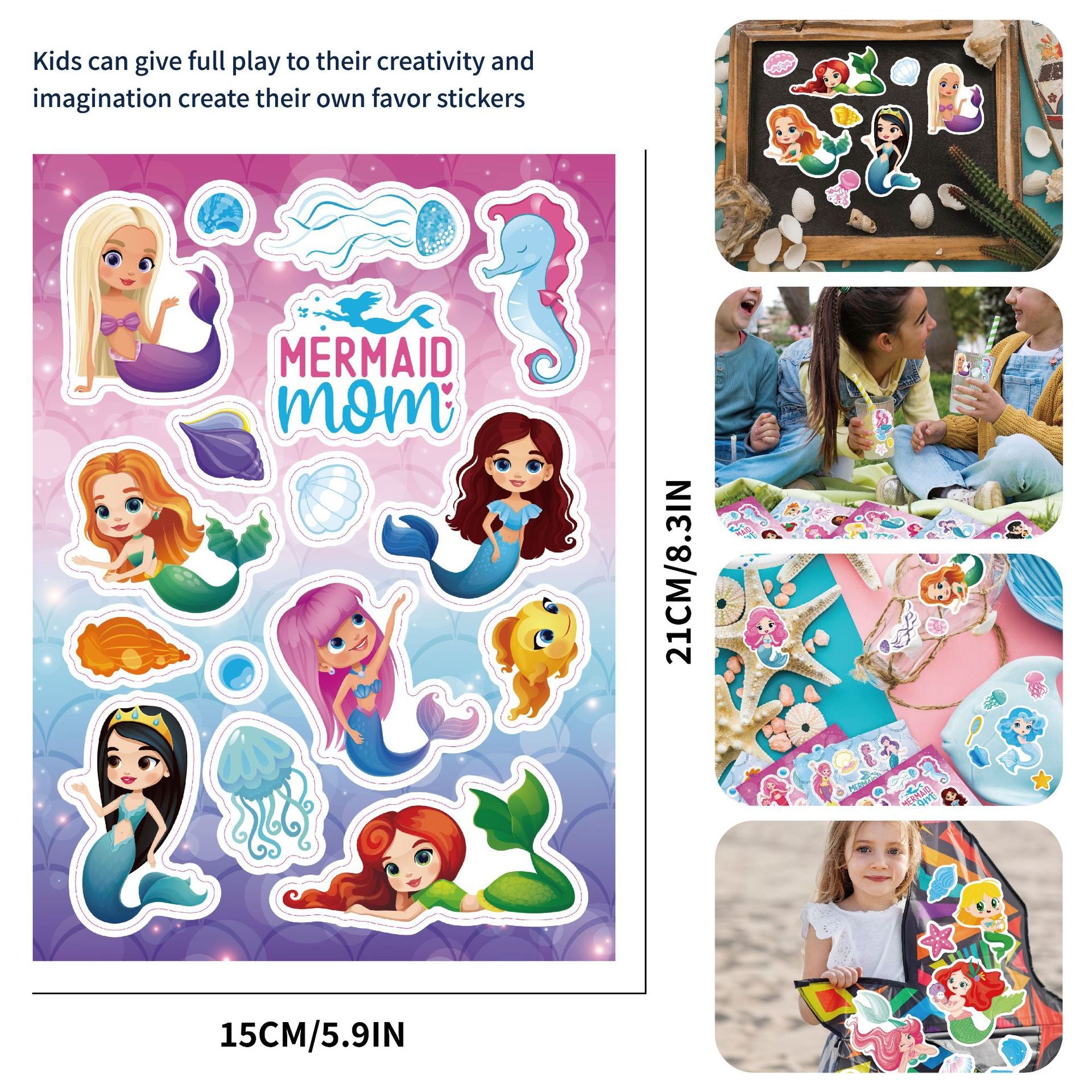 24KS 21x15 cm Samolepky na obličej pro děti, Vytvořte si vlastní samolepky Mořská panna tým, Párty dárky, Dětské tvoření, Výplň do dárkových tašek, Odměny ve třídě
