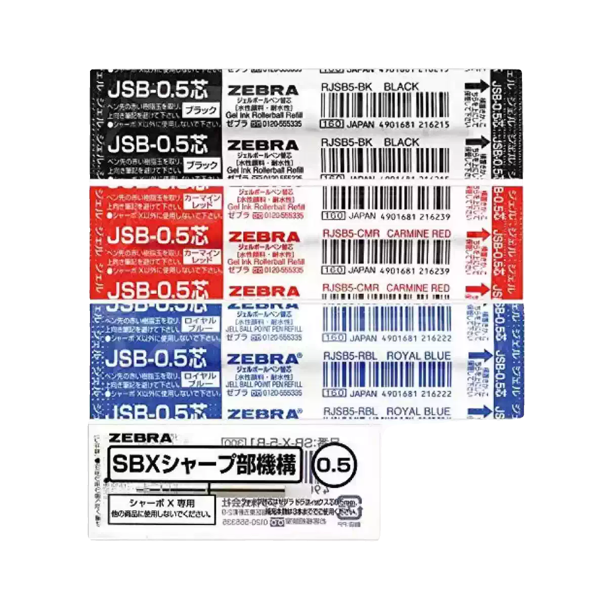 Náplň do gelového pera Zebra JSB-0.5 - D1 - 0,5 mm - černá/modrá/červená - balení 5 kusů