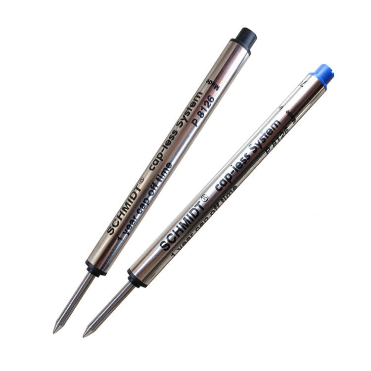 Schmidt P8126 Capless System påfyldning til kuglerullepen - Fin spids - Sort/Blå - 2 stk.