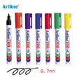 Artline [EK-700] Permanent 0.7mm Bullet Tip Markers Artline Permanent Markers are specially designed for indoor/outdoor use and are ideal for construction and industrial applications as well as arts and crafts projects. Long-lasting drawing is assured with the permanent fast dry and waterproof alcohol-based solvent ink, leaving an opaque water- and fade-resistant mark on nearly any surface, including glass, metal, plastic, porcelain, and wood, while minimizing the possibility of smears and smudges.