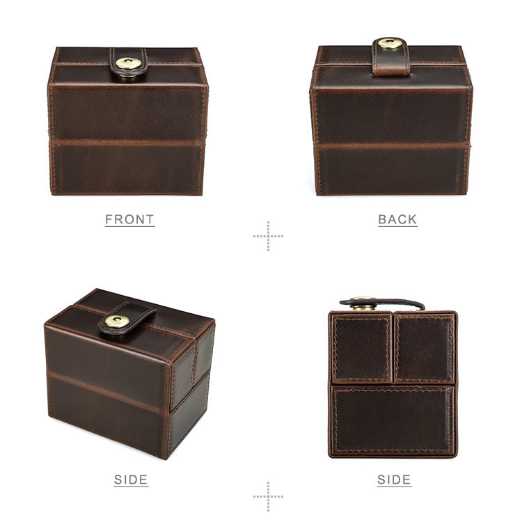 Echtes Vintage-Öl-Leder Reise-Uhrenetui Würfelförmiger Organizer-Etui