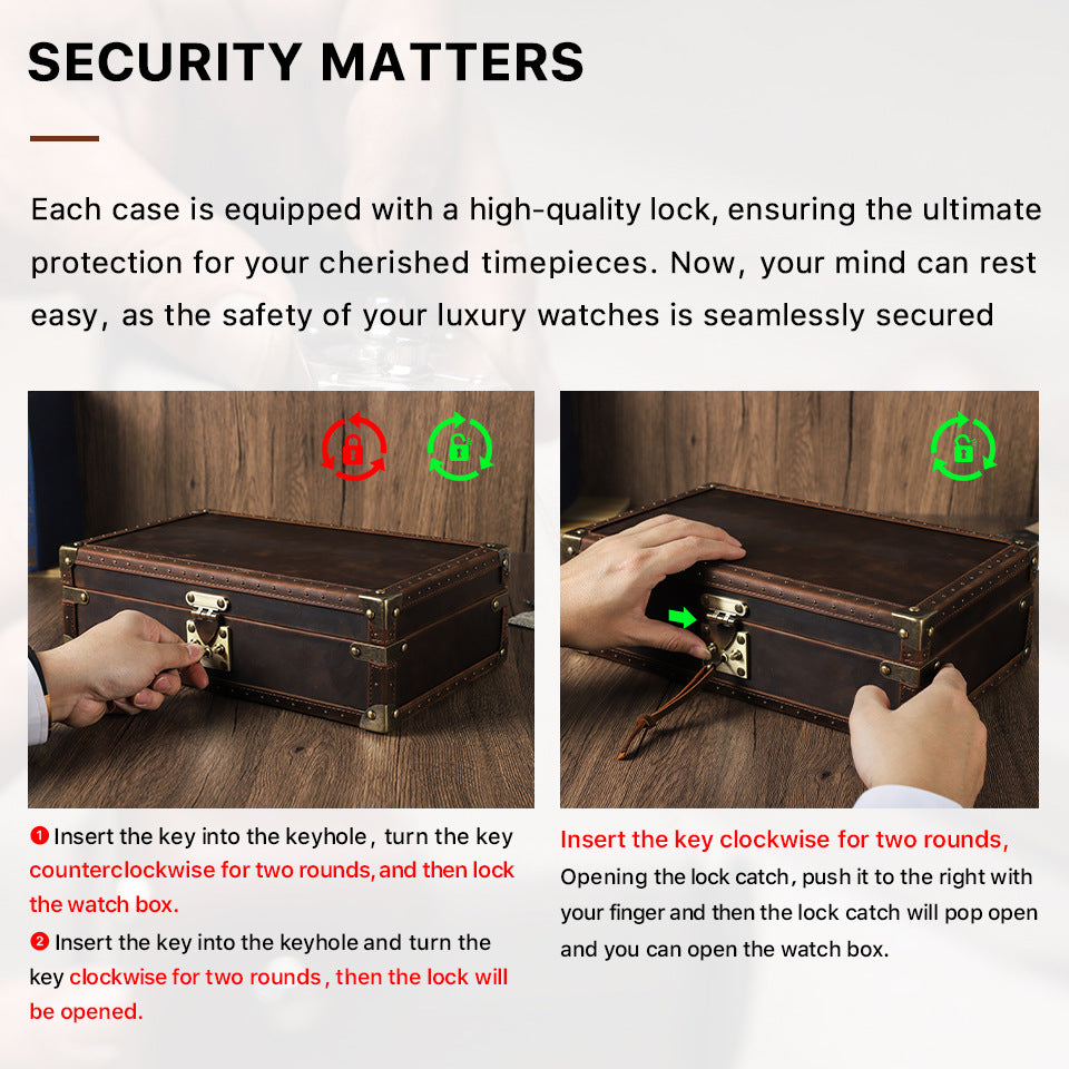 Für mehrere Szenarien geeignet – Vintage-Stil Schlossverschluss sorgt für Reisesicherheit, Ledergriff für Tragbarkeit, eleganter Präsentationsständer-Modus