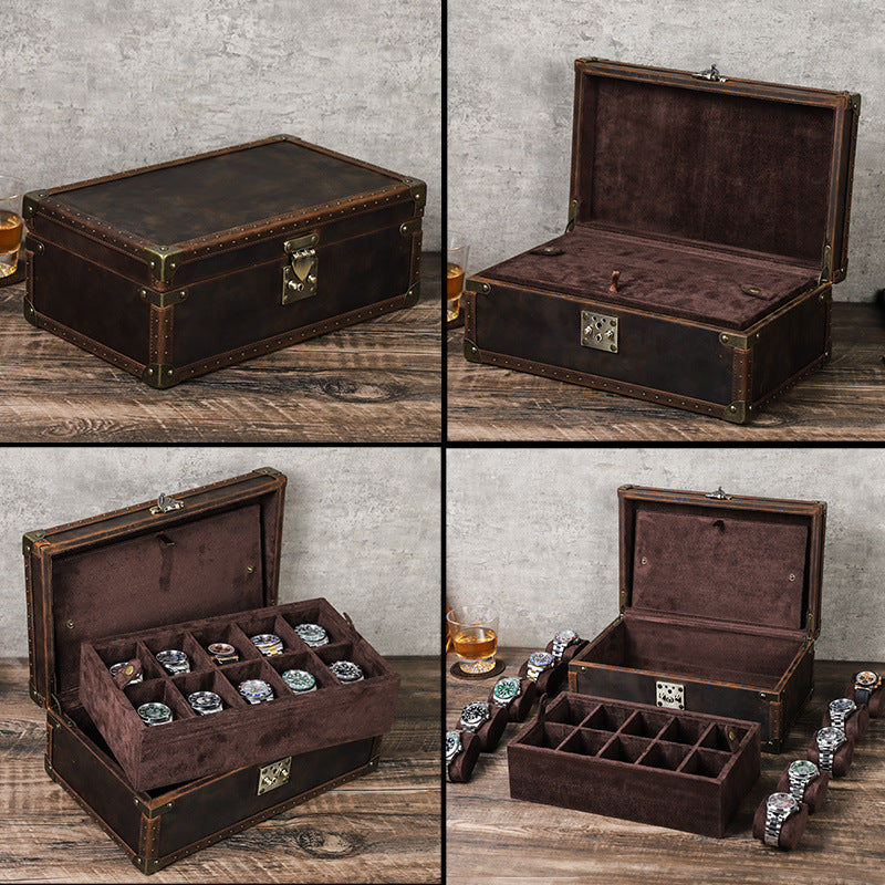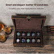 Luxuriöse handgefertigte 10-teilige Uhrenbox - Echtes Crazy Horse Leder Holz-Displaygehäuse mit abnehmbaren Kissen, metallverstärkten Kanten & Schlossverschluss für Reiseaufbewahrung und Sammlung