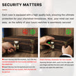 Doppellagiger Schutz – Außen: 2mm dicke Metall-Eckenschutzleisten + kratzfeste Lederoberfläche, Innen: 3mm stoßdämpfender Samt + schlagfeste Holz-Innenbox