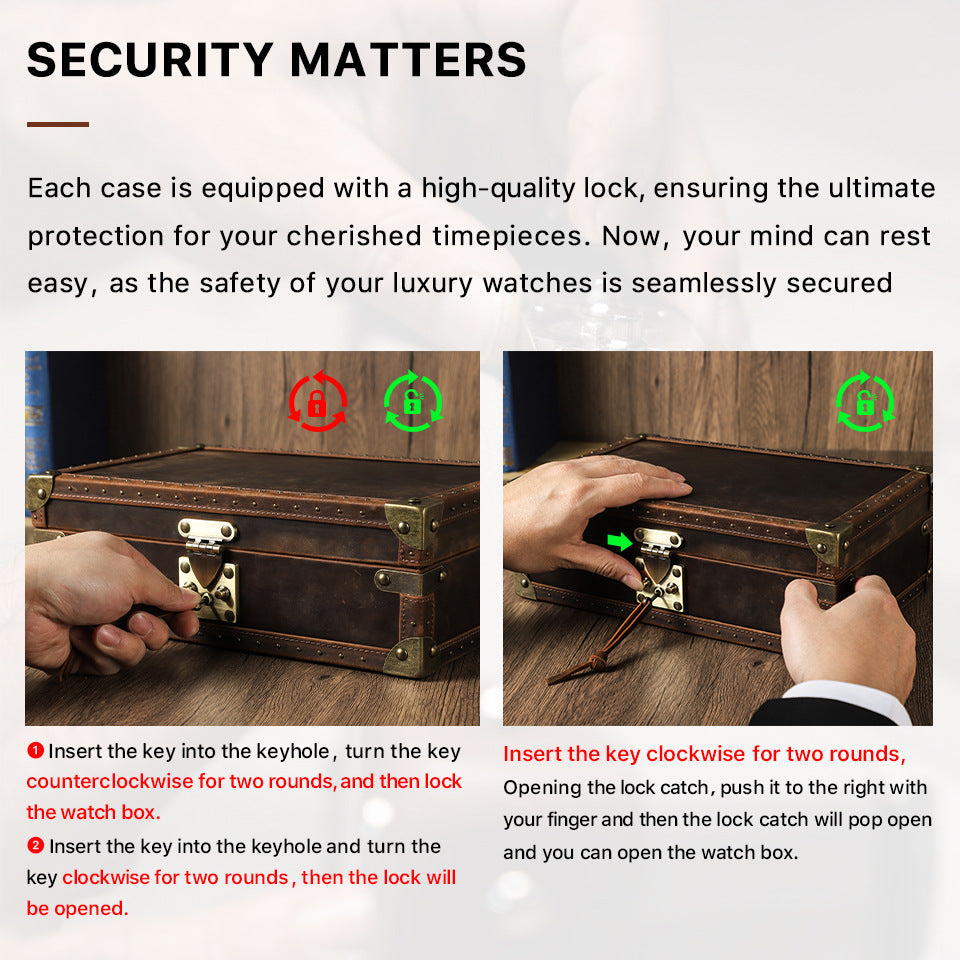 Für mehrere Szenarien geeignet – Vintage-Stil Schlossverschluss sorgt für Reisesicherheit, Ledergriff für Tragbarkeit, eleganter Präsentationsständer-Modus