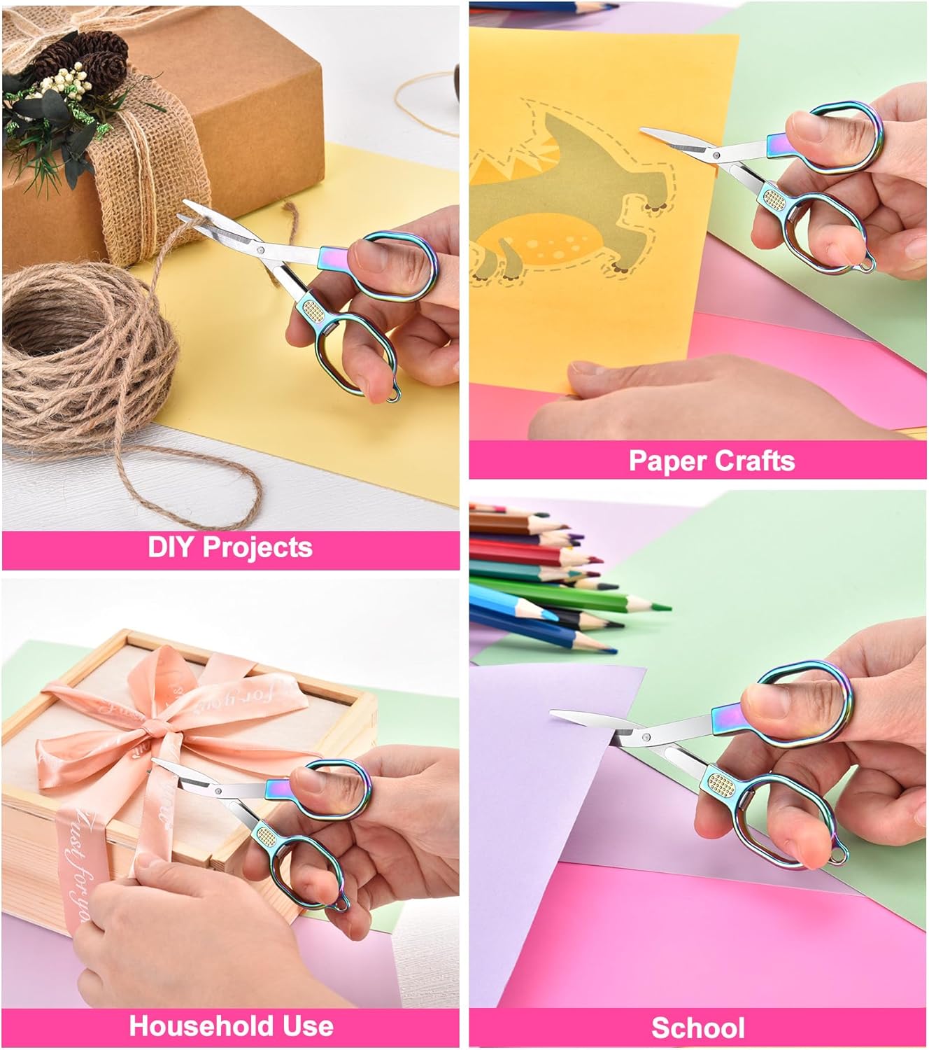 【Vollmetall-Schere】: Hergestellt aus hochfestem Edelstahl mit einer Regenbogen-Titan-Beschichtung, sind die kleinen faltbaren Scheren nicht nur scharf, sondern auch robust und bieten die schärfsten Schnitte für Papierbasteln, Bänder, Klebeband, Stoff, Haare, Faden, Garn, Kunststoffverpackungen und mehr. Geeignet für Küche zu Hause, Schulaktivitäten oder im Büro.
