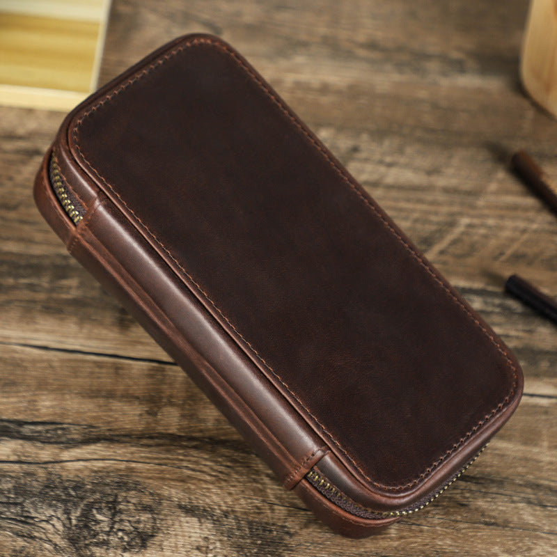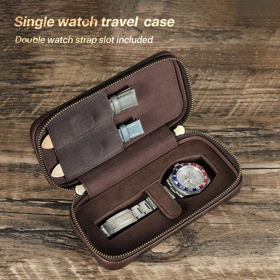 Crazy Horse Rindsleder Uhren-Reiseetui, Doppelter Rundum-Reißverschluss Uhrenbox zur Aufbewahrung einer Uhr