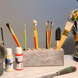 Elaborado con madera maciza, este asequible portalápices es una excelente manera de personalizar su espacio de trabajo.
