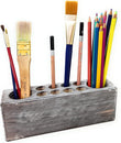 Portalápices de madera rústica con 10 ranuras para escritorio, organizador de bolígrafos de escritorio de madera maciza, portalápices, elegante diseño vintage, solución perfecta para organización de escritorio