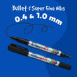 ANCHO DE ESCRITURA - Puntas finas de 0.4mm y 1.0mm crean 2 líneas sólidas y consistentes distintas.