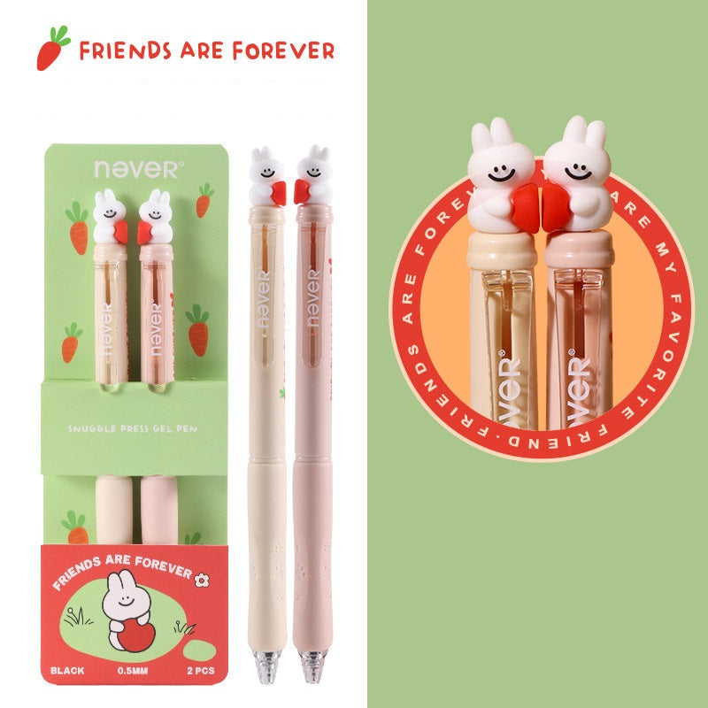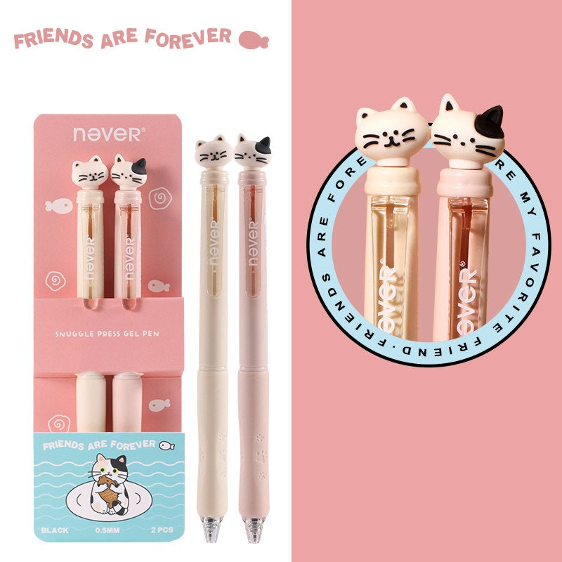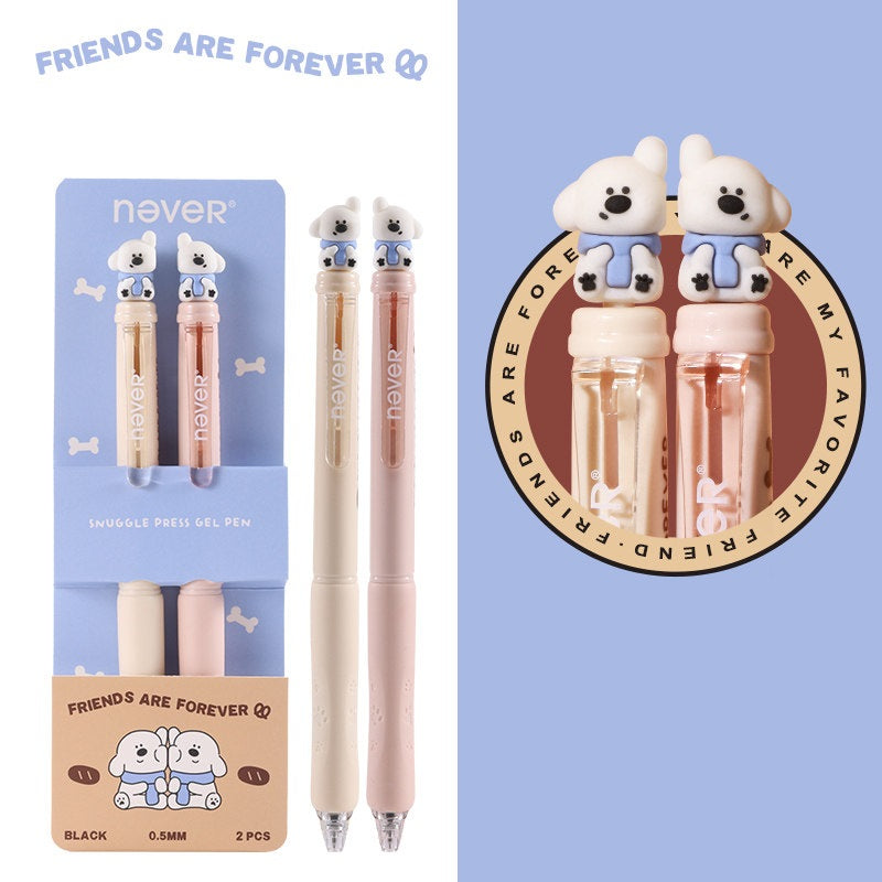 Bolígrafo retráctil de gel NEVER Cute Animal 0.5mm tinta negra — Secado rápido, agarre de silicona, juego de 2