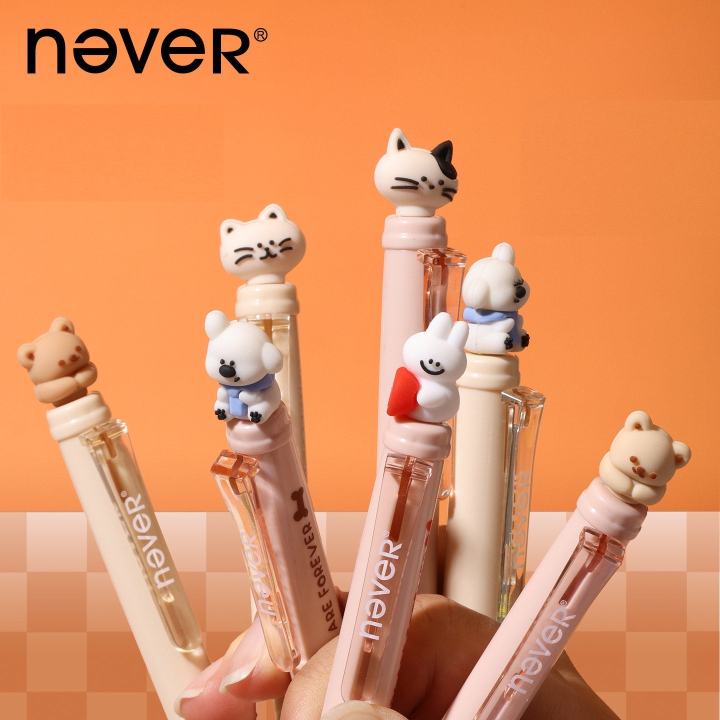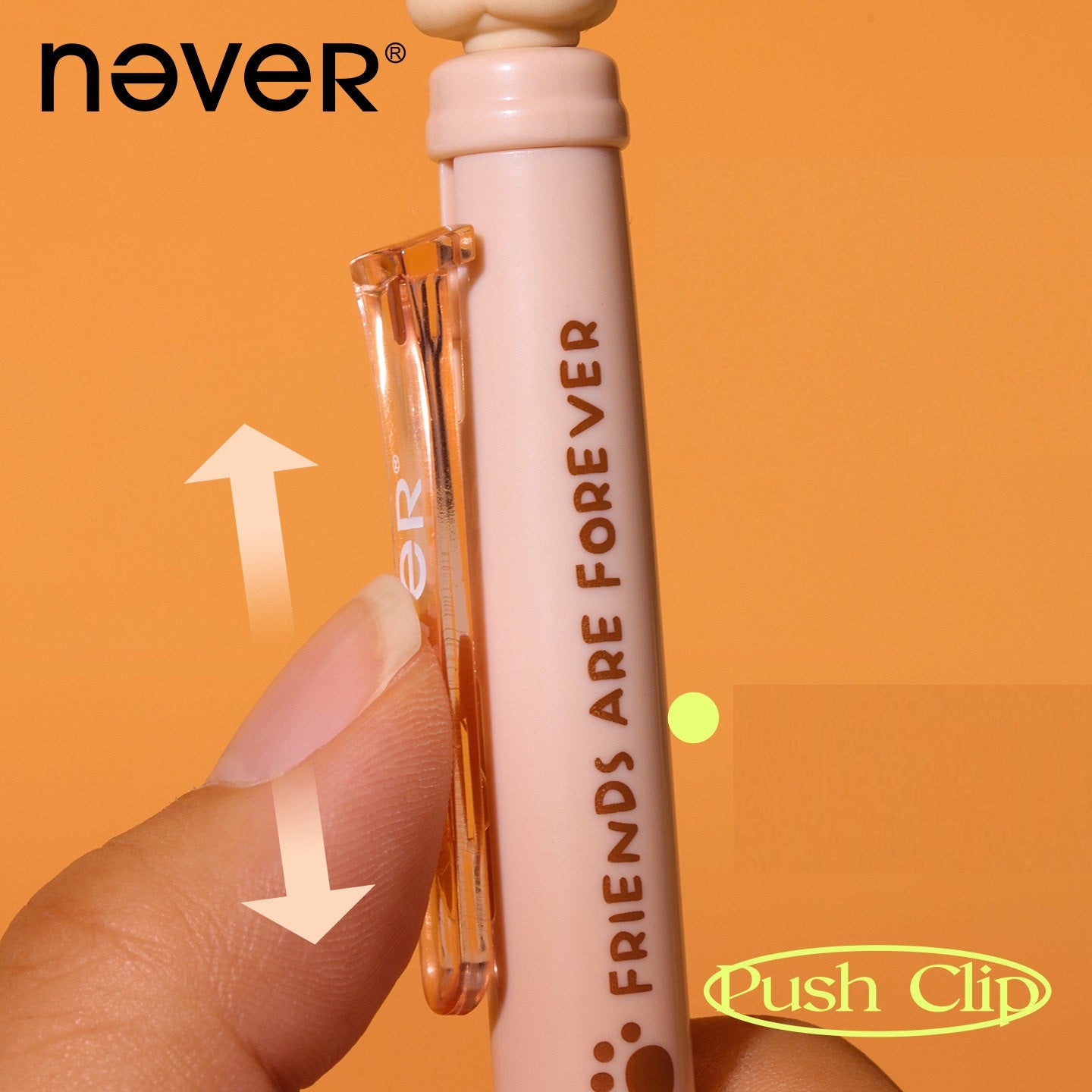Un bolígrafo suave al sostener y difícil de dejar. La serie NEVER Cute Animal combina tinta de gel negra de 0.5 mm de secado rápido con un agarre acolchonado de silicona, todo envuelto en un cuerpo con un adorable personaje animal minimalista. Elige tu favorito entre cuatro diseños, toma un par a juego y haz que cada sesión de escritura sea un poco más agradable.