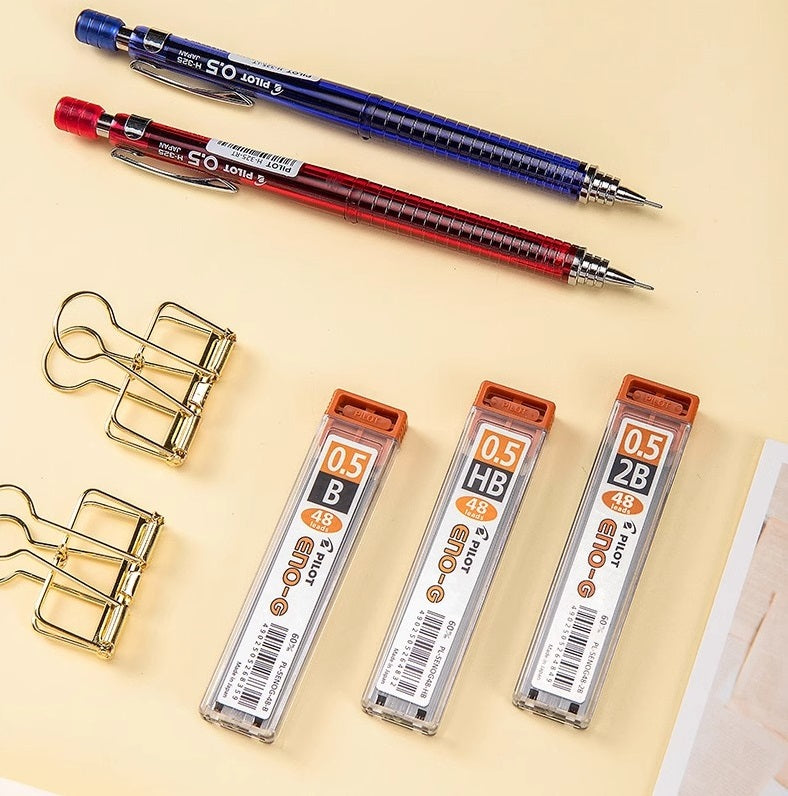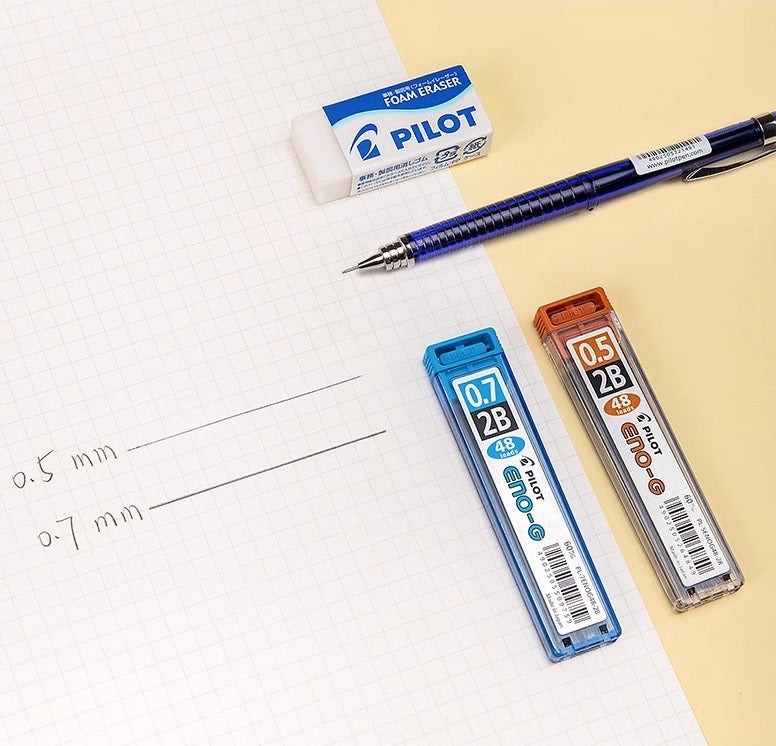 Minas Pilot ENO-G HB de 0.5mm para portaminas. Fórmula exclusiva que previene la rotura de minas y mantiene los portaminas funcionando en su mejor estado.
