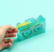 Este cortador de cinta casete Sun-Star es una forma retro de almacenar y usar funcionalmente tus cintas washi favoritas. Simplemente abre el compartimento frontal, desenrolla una cinta de 18 mm (o más delgada), carga la cinta en el casete, cierra el compartimento y corta la cinta. Carga hasta dos cintas a la vez y usa el espacio en blanco para etiquetar qué cintas están dentro del casete.