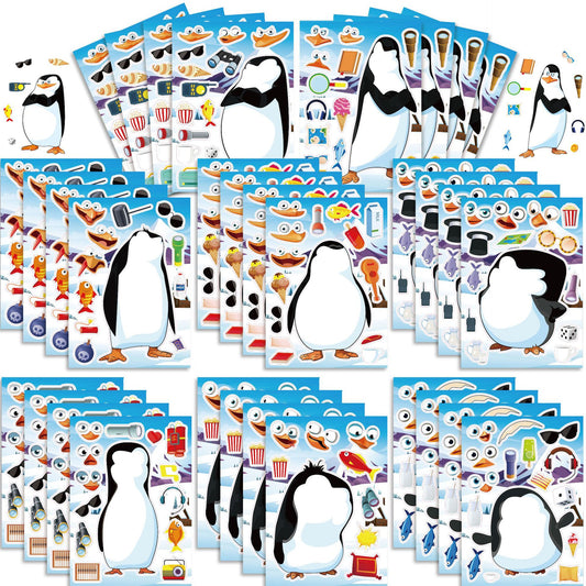 24 arkkia sarjakuvapingviini tee-se-itse -tarroja lapsille, kasvotarroja pojille ja tytöille, tee omat DIY-tarrasi, taide- ja...