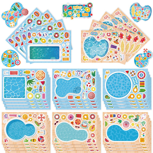 24 arkkia sarjakuvamaisia kesäuima-altaan DIY-tarroja lapsille, kasvotarroja pojille ja tytöille, tee omat DIY-tarrasi, taide- ja...