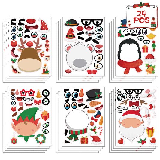 24 arkkia joulun tee-se-itse -tarroja lapsille, kasvotarrat pojille ja tytöille, tee omat DIY-tarrasi, taide- ja...