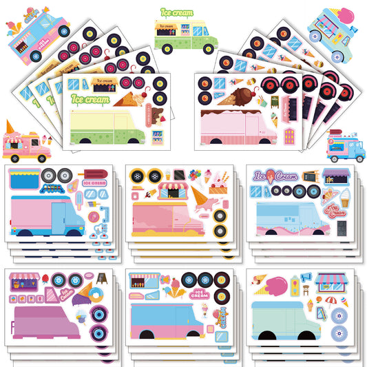 Jäätelöauton tarroja lapsille - 24 arkkia Tee oma jäätelöauto, poikien ja tyttöjen kasvotarrat, luokkahuoneen palkinnot,...