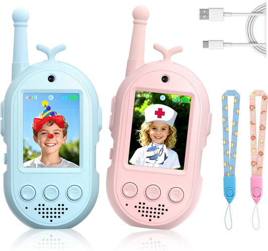 Videopuhelinkäyttöiset radiopuhelimet lapsille, käsikäyttöiset 2 pakkausta ladattavia videopuhelinradiopuhelimia lapsille, sisä- ja ulkoleluja perhepeleihin, ulos, leirintäretkille,...