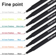 Hienokärkiset kynät - Erittäin ohuet 0,4 mm hienokärkiset värikynät, joissa on erittäin hieno, metallipäällysteinen kärki tarkkuutta ja kestävyyttä varten. Täydelliset hienoon, yksityiskohtaiseen työhön viivoittimien ja sapluunoiden kanssa, taiteilijoiden hienomusteisiin piirroksiin ja pienten monimutkaisten kuvioiden värittämiseen.