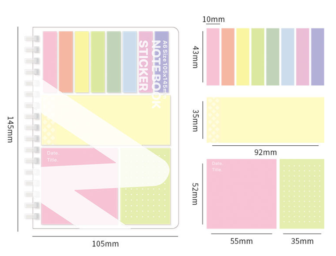 【Morandi A6 kierresidottu muistikirjasetti】Tämä kierresidottu muistikirja sisältää yhden tarrapakkauksen (yhteensä 220 tarraa). Matala-saturaatiolla varustetut Morandi-värit tarjoavat minimalistisen ja tyylikkään ilmeen. Jokaisen muistikirjan koko on 4,3 x 5,8 tuumaa, kevyt ja kannettava, mahtuu helposti reppuihin, käsilaukkuihin tai matkalaukkuun. Olipa kyseessä opiskelumuistiinpanot tai toimistotiedot, tämä muistikirja täyttää kaikki tarpeesi, tehden siitä ihanteellisen valinnan, joka yhdistää estetiikan ja käytännöllisyyden.