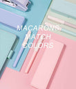 Macaron-värivaihtoehdot: Neljä pehmeää pastellisävyä lisäävät hauskuutta ja persoonallisuutta kirjoitustarvikekokoelmaasi. -