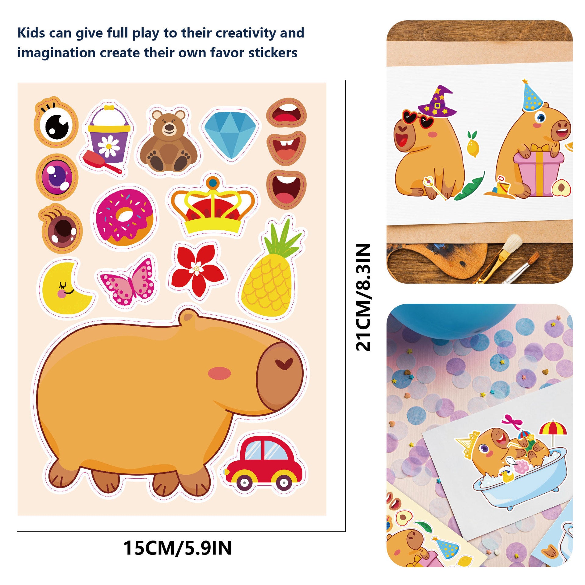 Capybara-tarrat lapsille - 24 arkkia Tee oma Capybarasi, pojat tytöt Tee kasvot -tarrat, luokan palkinnot, taide- ja askartelutarvikkeet juhliin