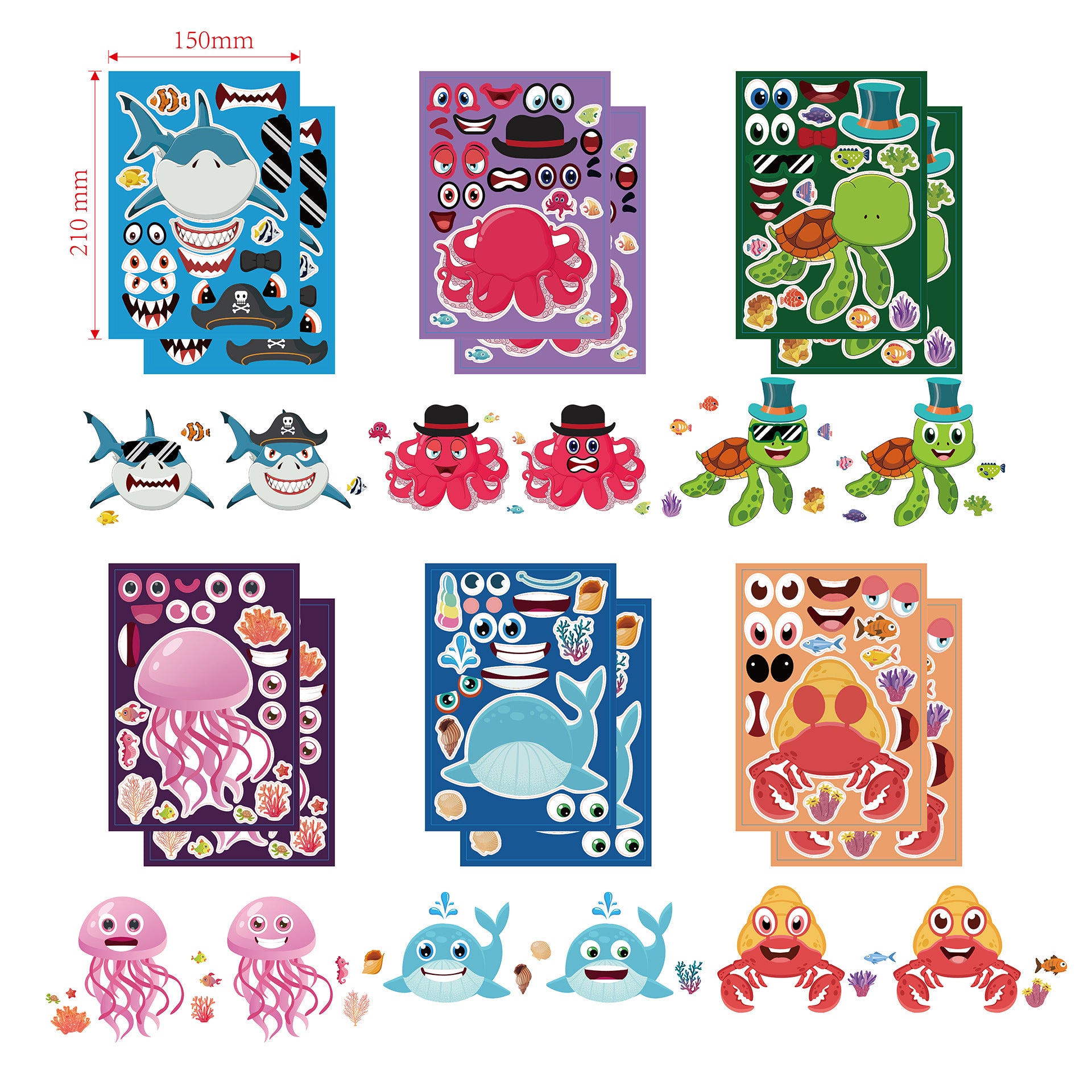 Tee kasvokartooni merieläimistä tee-se-itse-tarrat lapsille 24 arkkia