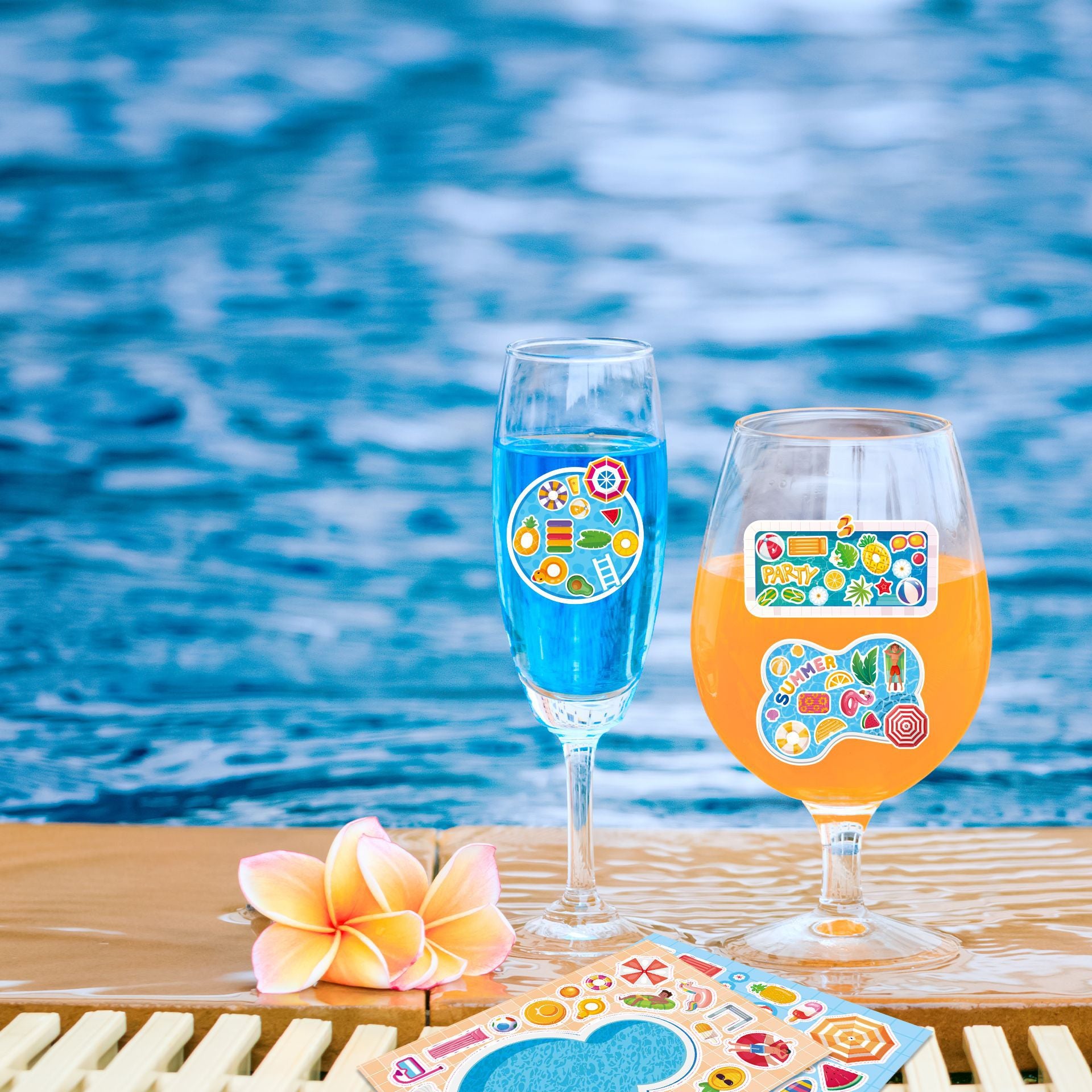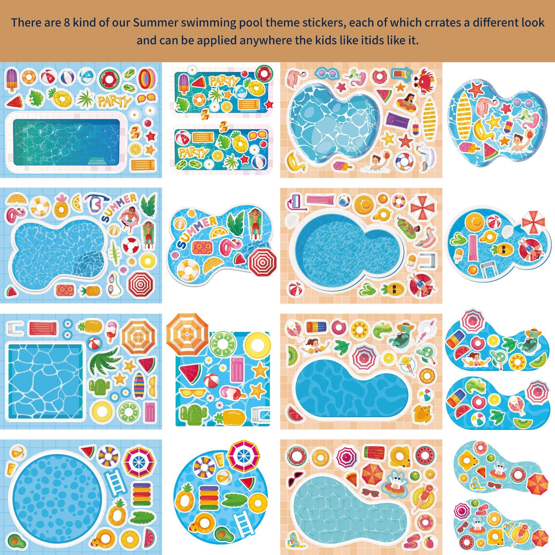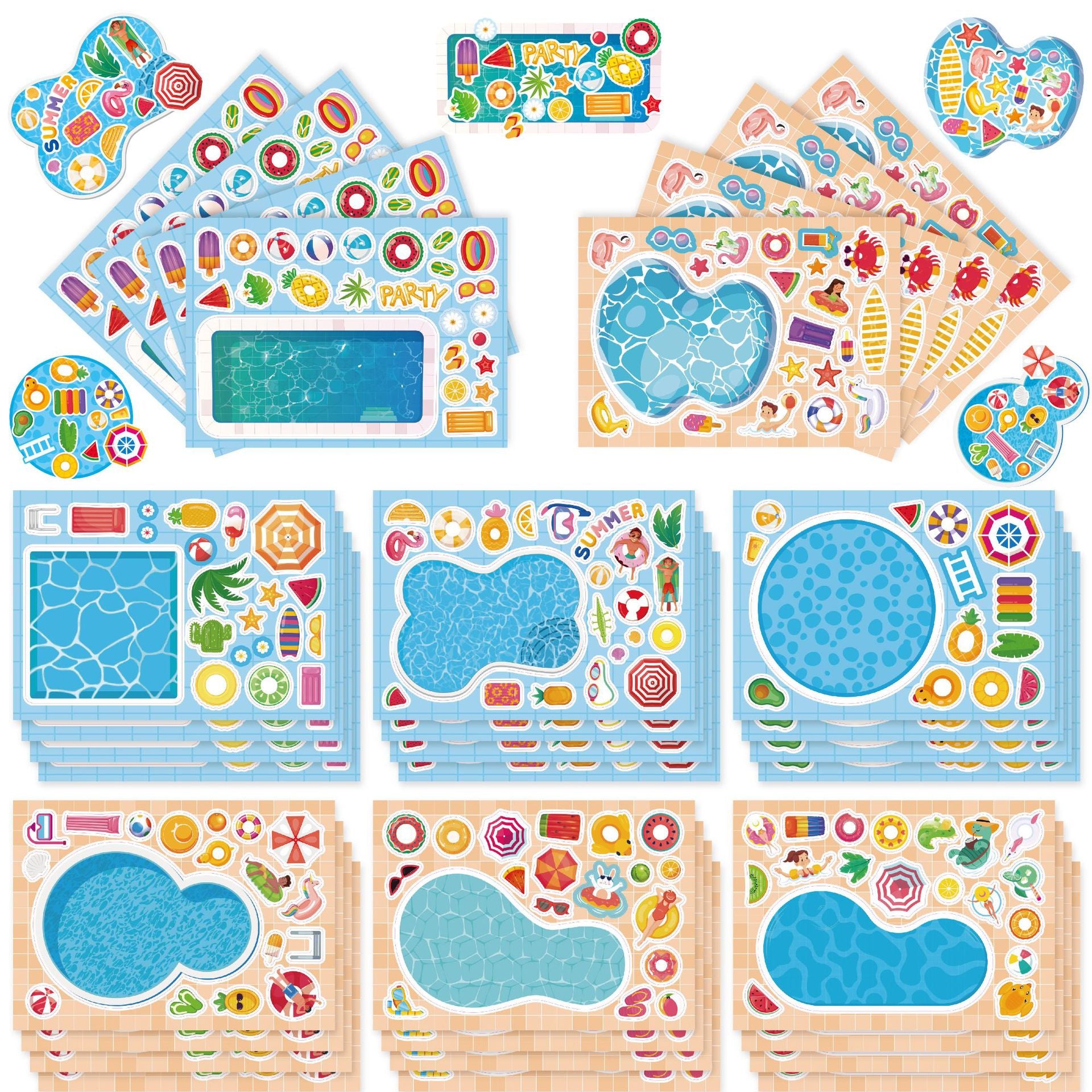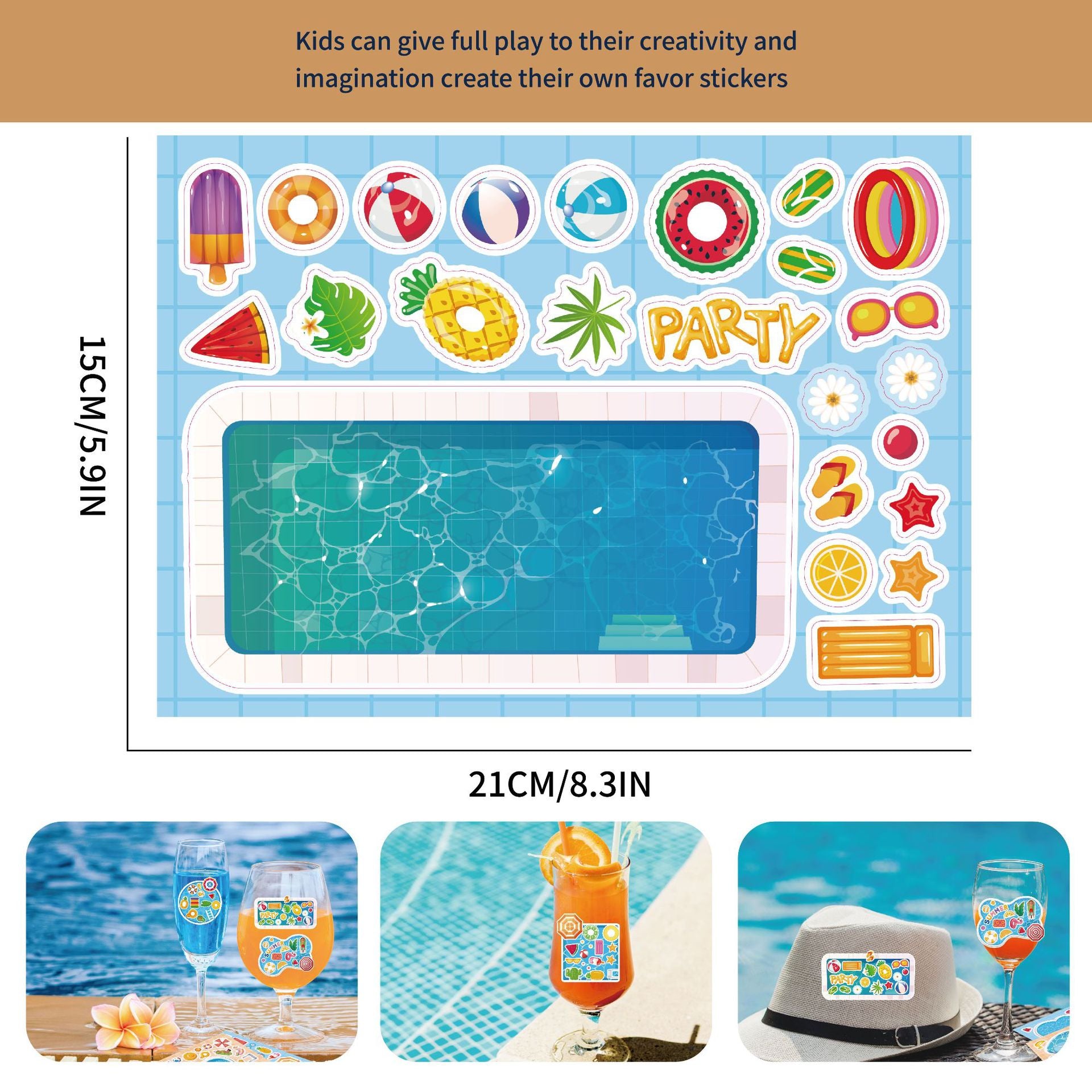 24 arkkia sarjakuvamaisia kesäuima-altaan DIY-tarroja lapsille, kasvotarroja pojille ja tytöille, tee omat DIY-tarrasi, taide- ja askartelupalkintoja syntymäpäiväjuhliin