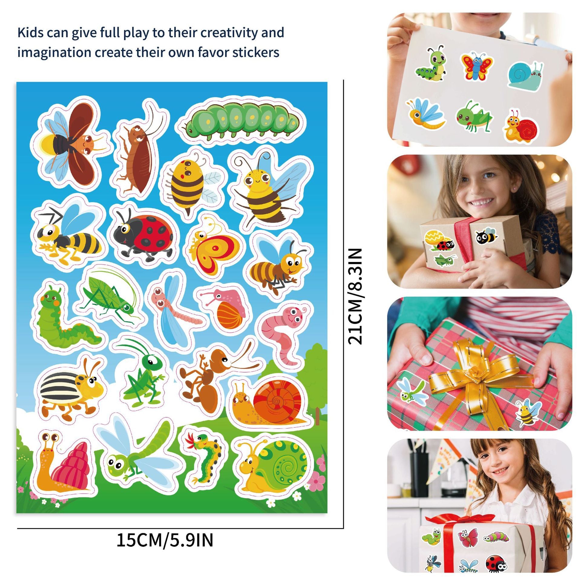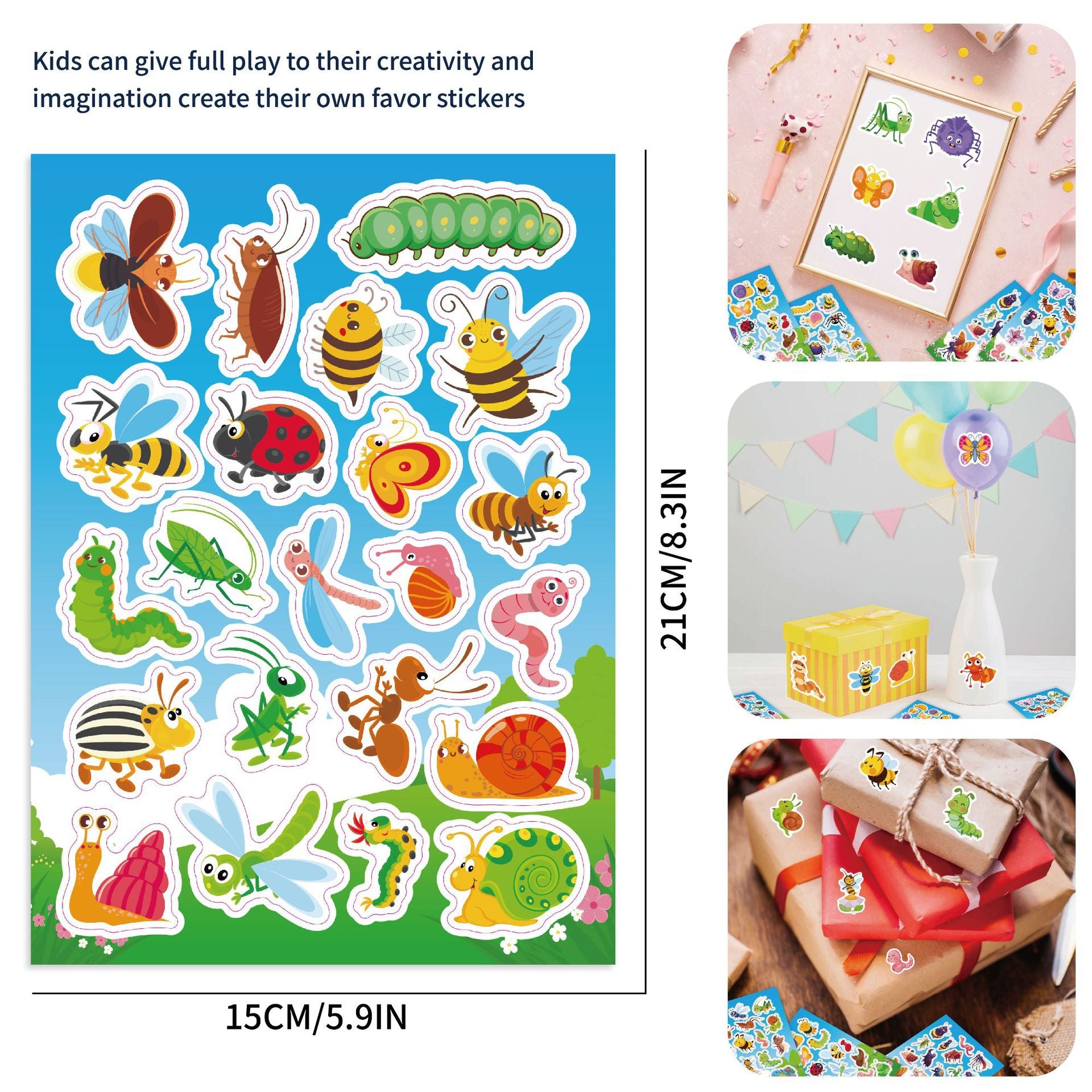 24 KPL 8,3"x5,9" Tee kasvot -tarroja lapsille, Tee omat hyönteinen mehiläinen kovakuoriainen -tarrat, juhlaherkut lasten askarteluun, lahjapussien täytteet, luokan palkinnot