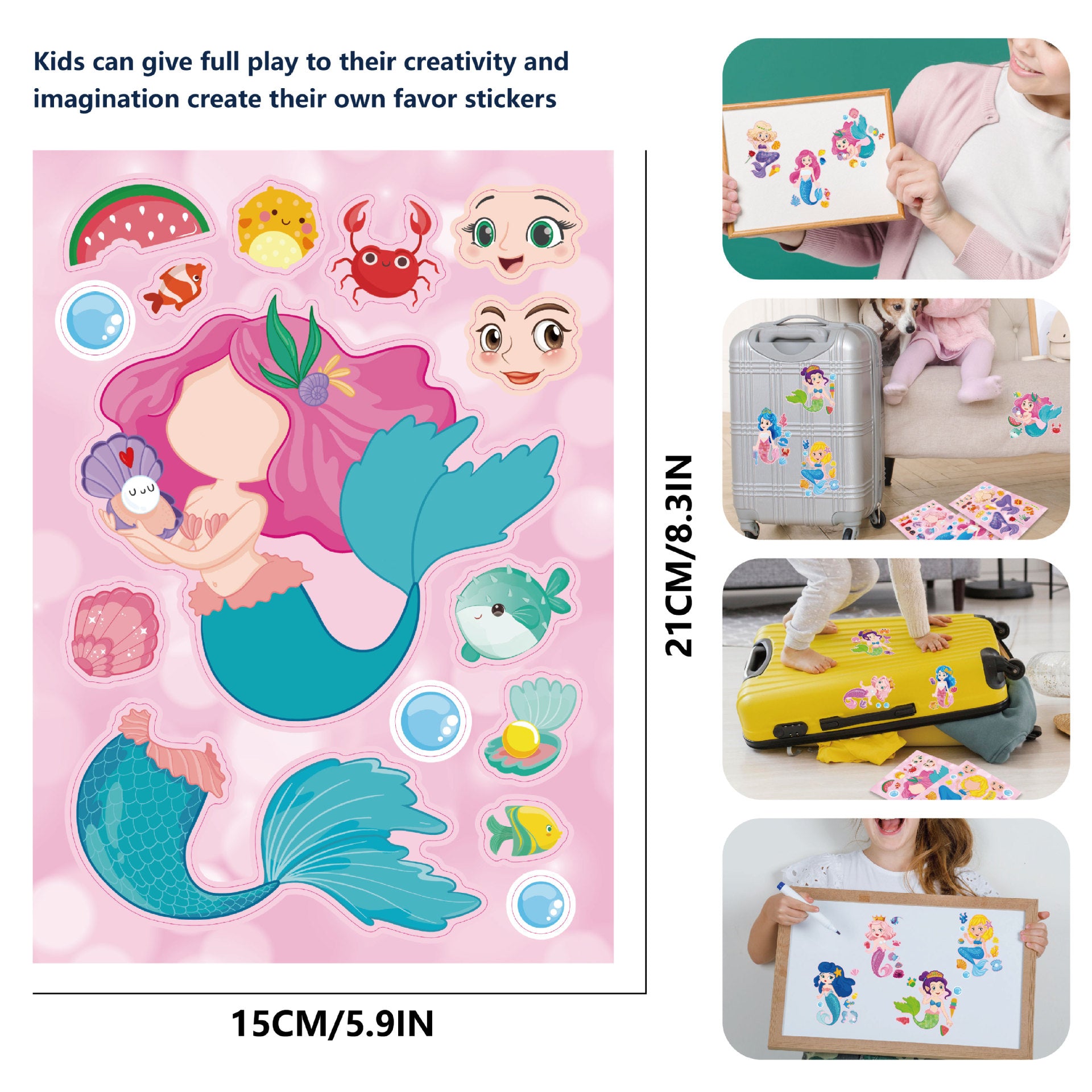 Merenneito-tarrat lapsille - 24 arkkia Tee oma merenneito, poikien ja tyttöjen kasvotarrat, luokkahuoneen palkinnot, taide- ja askartelujuhlatarvikkeet
