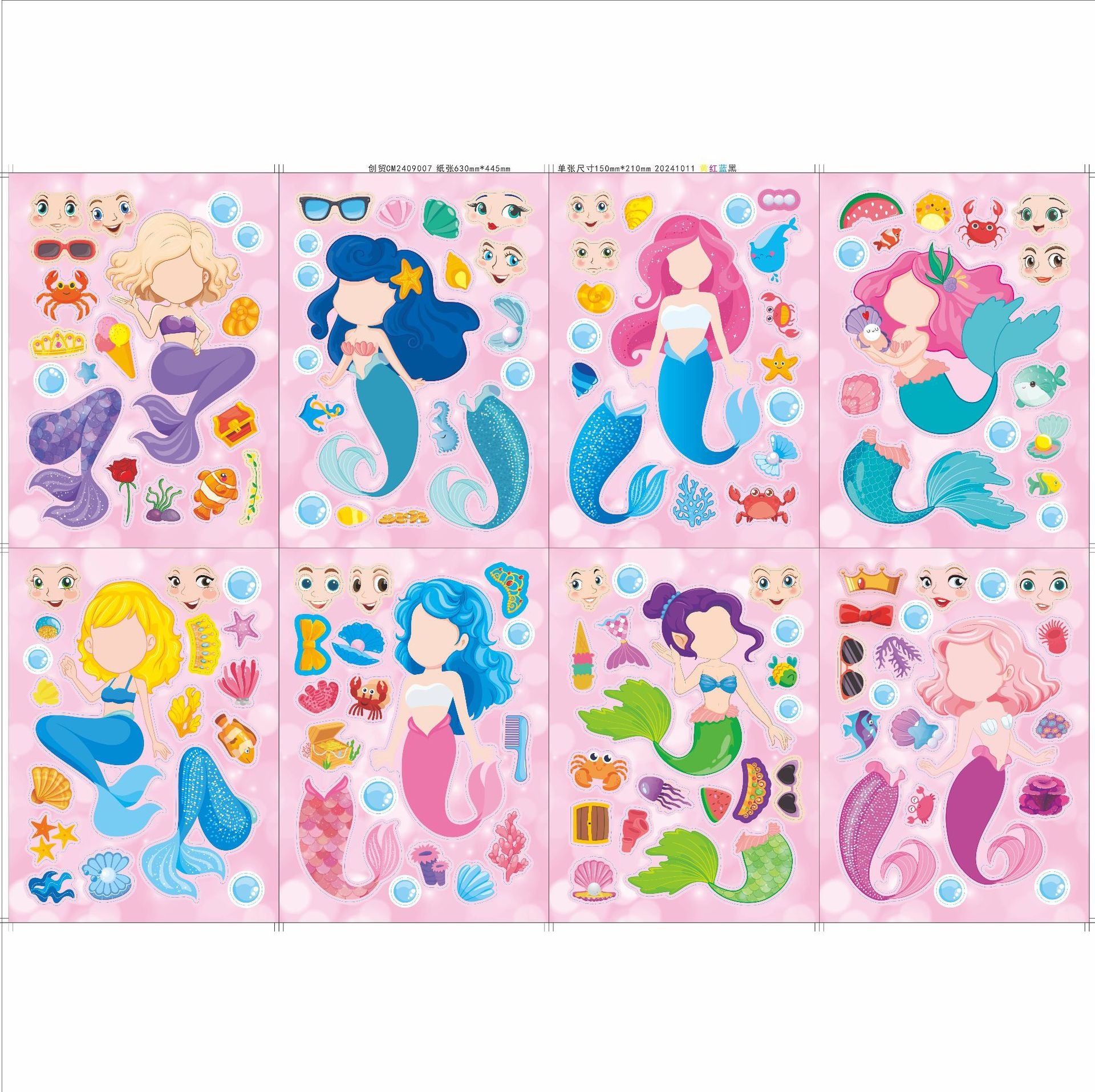 Tee kasvotarrat - Tämä tarrapaketti sisältää 24 arkkia, joissa on 8 merenneitokuvioita. Jokainen arkki on 5,9*8,3 tuumaa, kaikki tarrat ovat 100 % uusia. Suloiset tarrat ovat täydellisiä lahjoiksi!