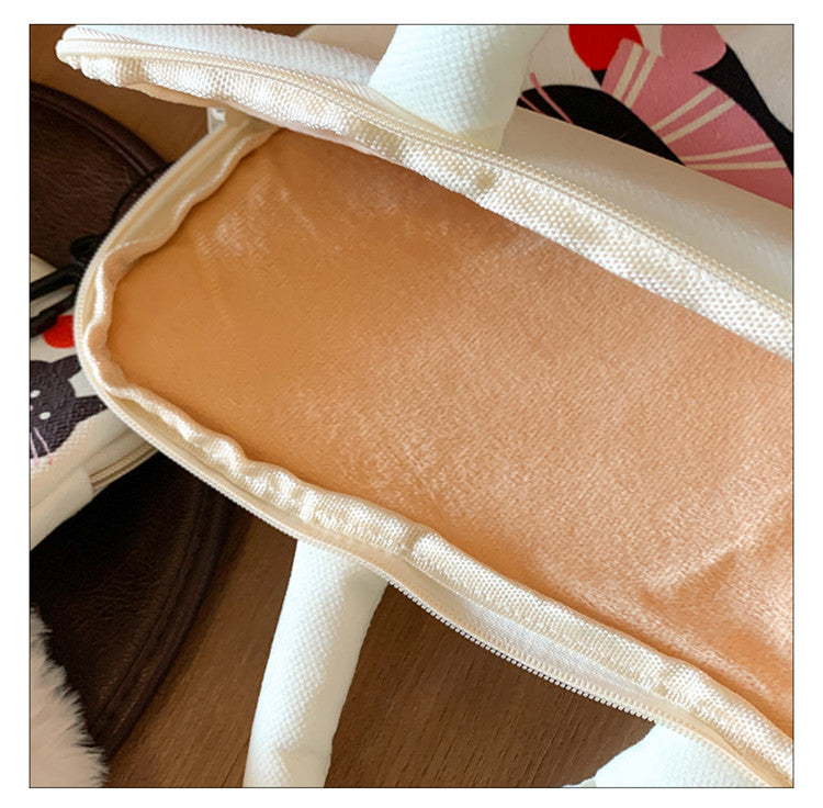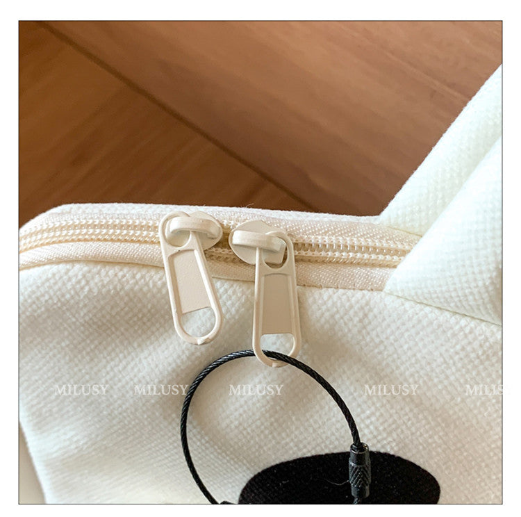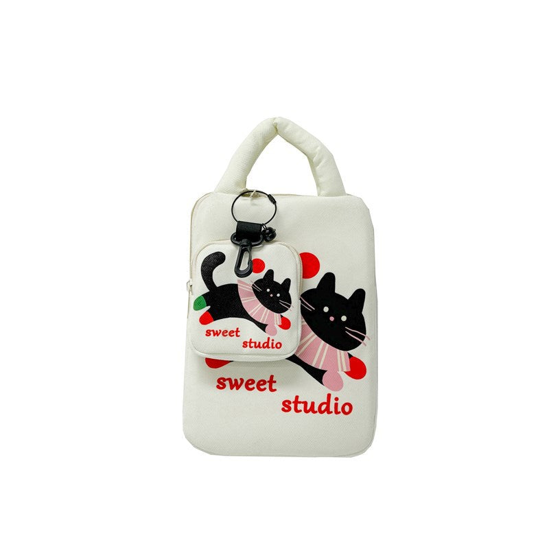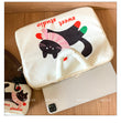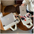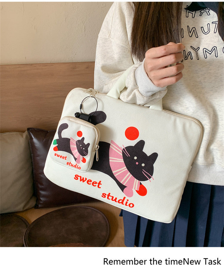 Valkoinen kissateemainen läppärisuojus 14" MacBookille & 11" iPadille – plyysivuori, iskunkestävä suoja, 2-osainen setti (suoja + laukku), kaksi kokoa saatavilla