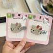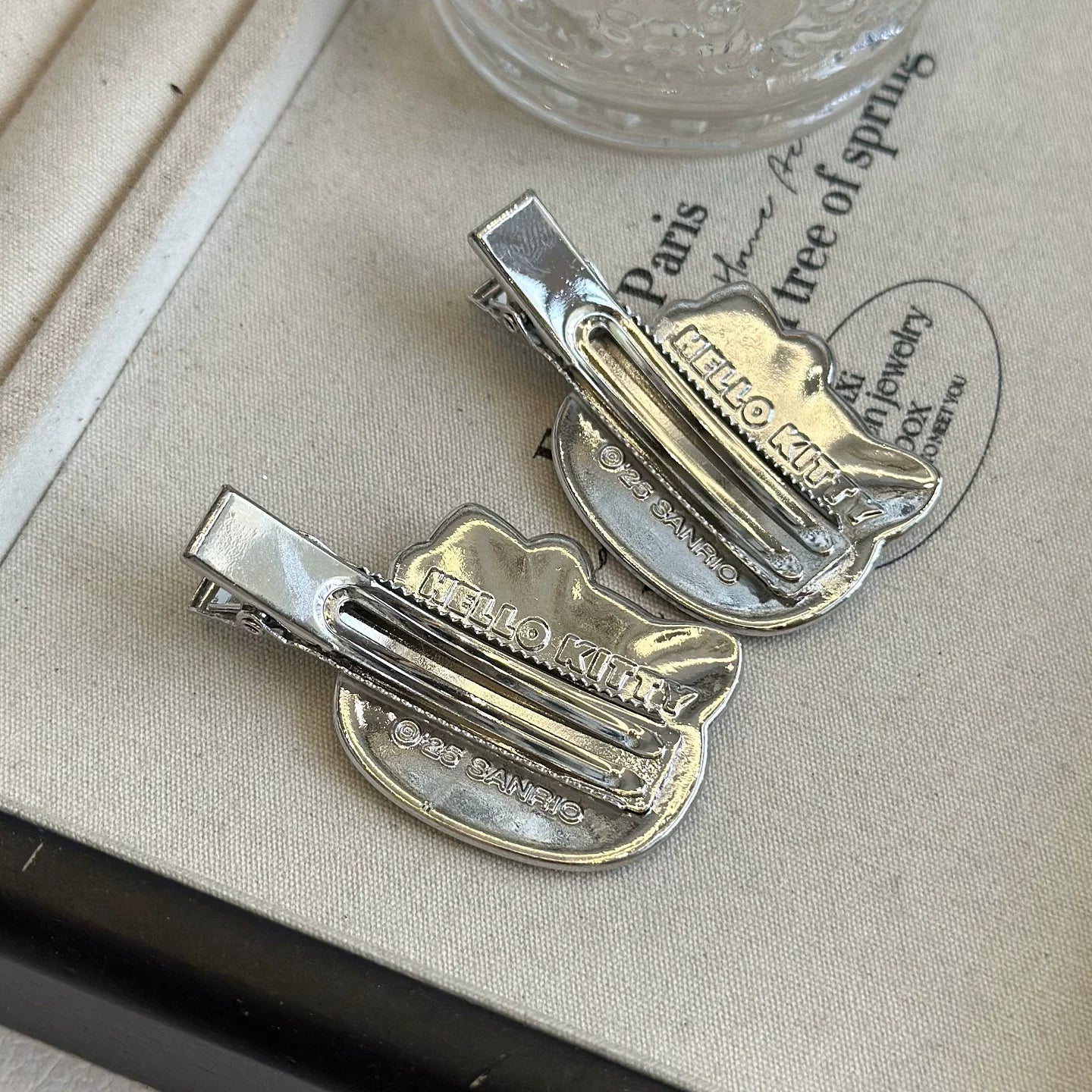 Ajoutez une touche de magie kawaii à votre coiffure avec cet adorable ensemble de clips Hello Kitty à strass pailletés ! Composé de deux élégantes barrettes métalliques ornées de strass étincelants, ces pièces sont conçues pour maintenir vos franges en place tout en apportant un accent doux et scintillant.