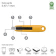 Ce coupeur compact est préchargé avec une lame de sécurité exclusive à double tranchant avec bord à 90 degrés. Les lames de sécurité OLFA offrent une netteté et une tenue de tranchant inégalées pour les découpes à haut volume.