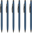 Stylos à bille rétractables bleu métallisé fin, encre noire, paquet de 6