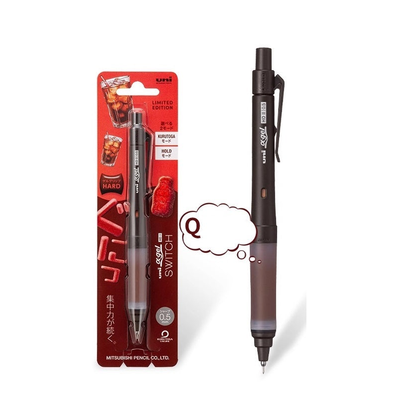 Le crayon polyvalent Uni Alpha Gel Switch est conçu pour la commodité. Il combine la prise ultra-douce Alpha Gel de Uni avec deux modes d’écriture : le mode « Kuru Toga », qui intègre le mécanisme innovant de rotation de la mine de Uni, et le mode « Maintien ». Pour passer d’un mode à l’autre, il suffit de tourner la pince du crayon : aligner la pince avec la fenêtre sur le côté du crayon active le mode « Maintien », tandis que tourner la pince sur le côté active le mécanisme de rotation.