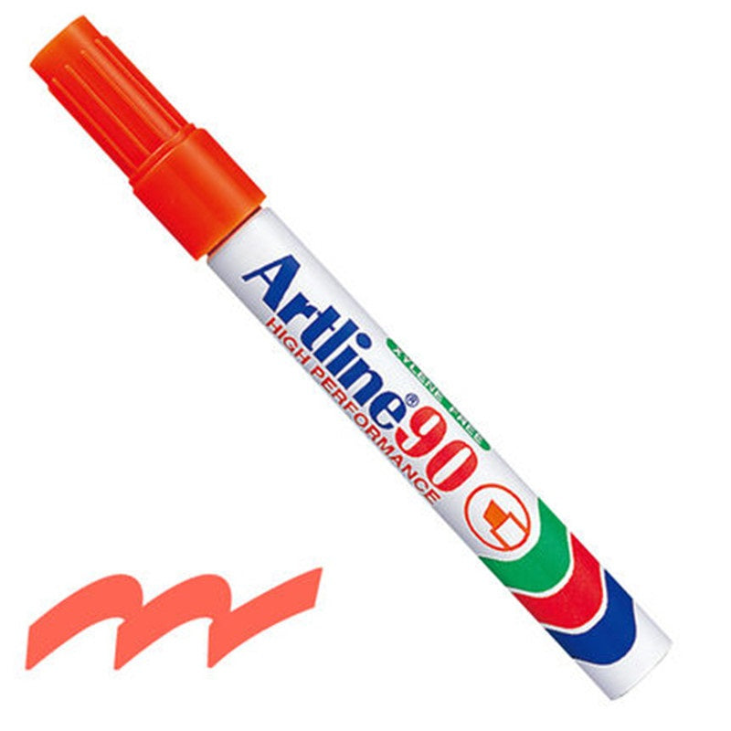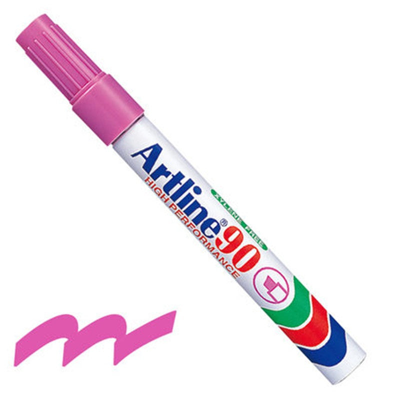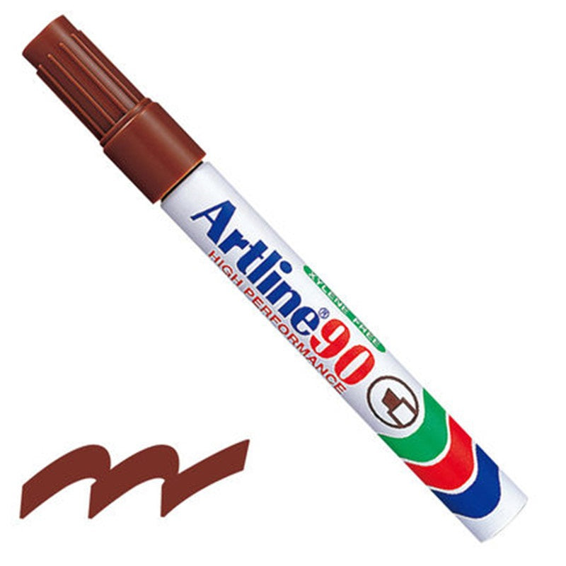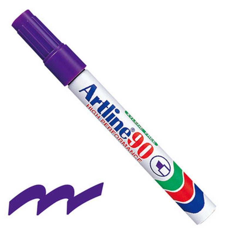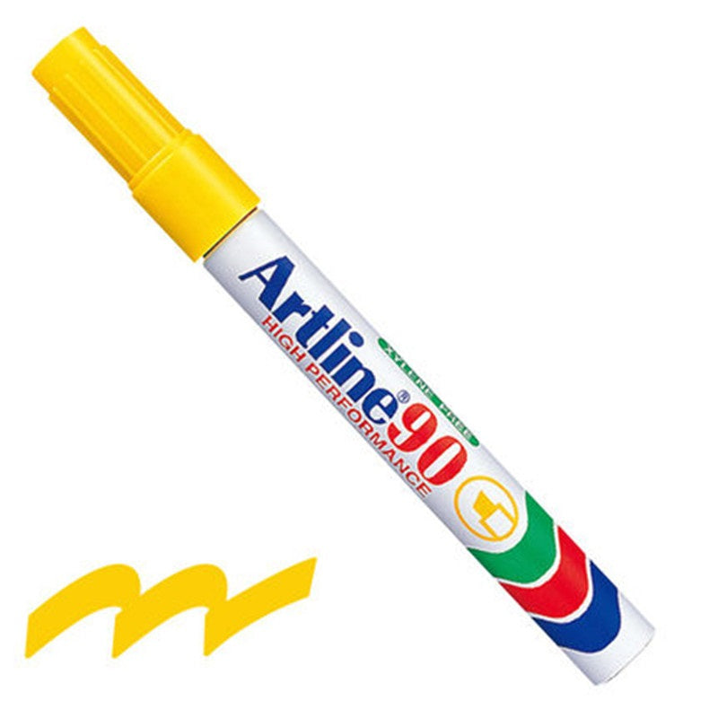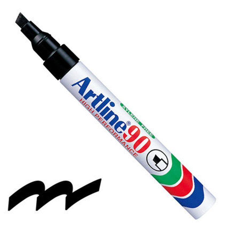 Artline [EK-90] 2.0-5.0mm Chisel Tip Permanent Markers are our best-selling permanent markers with a chisel nib. Long-lasting, clear drawing is assured with the fast-drying and water-resistant ink that is perfect for marking on most surfaces, including paper, plastic, and metal. They are low in odor and xylene-free, with an aluminum barrel for added strength. Recommended Uses included paper, cartons, glass, porcelain, metal, plastic, rubber, and wood.