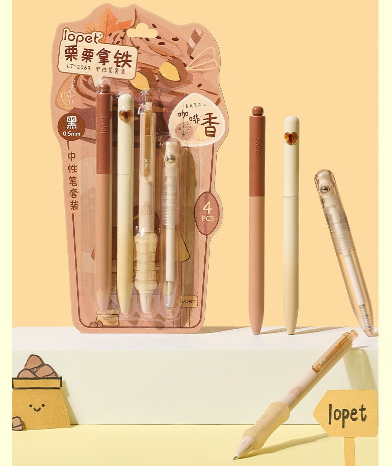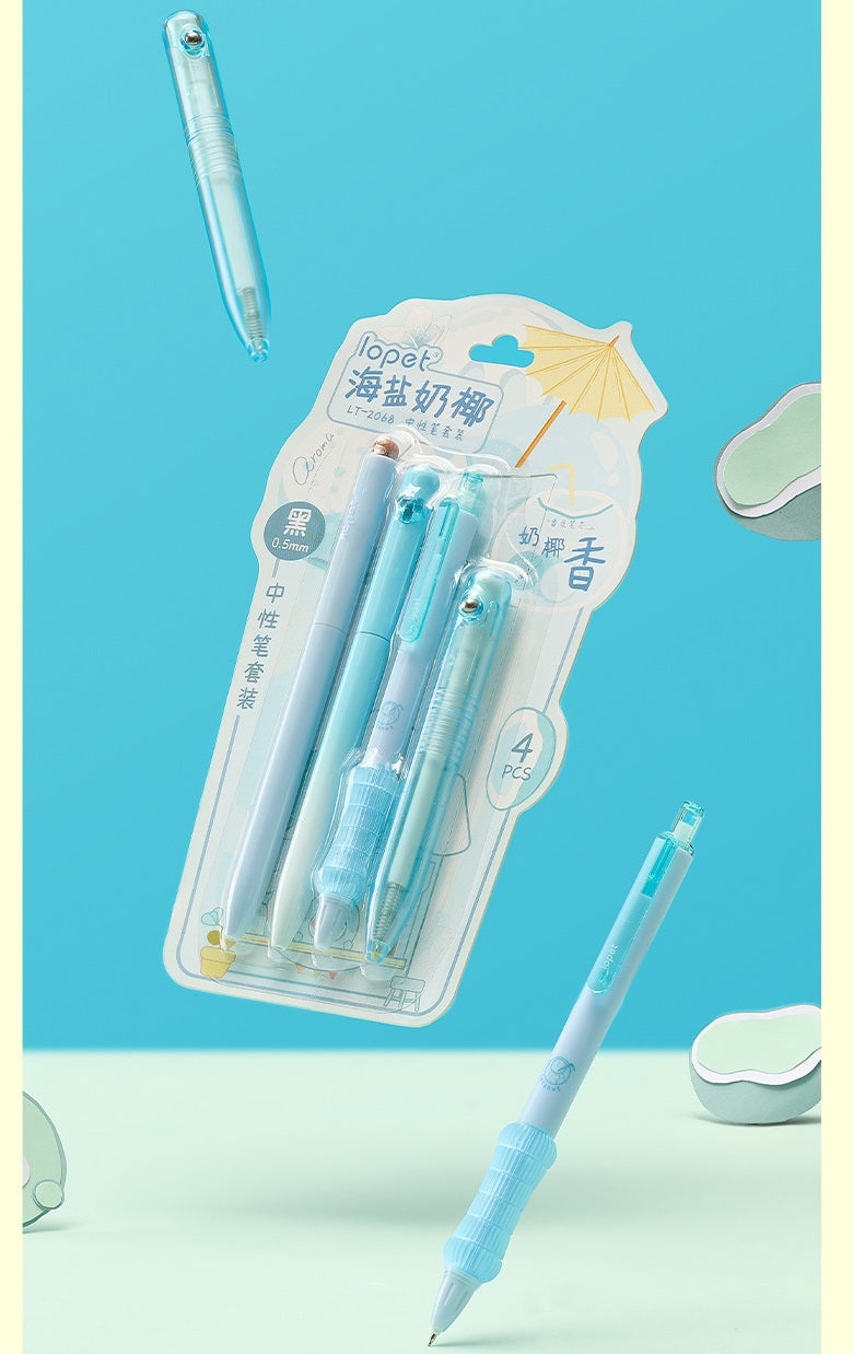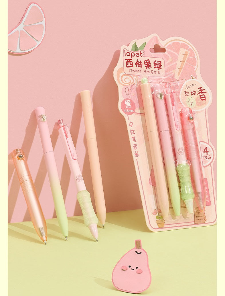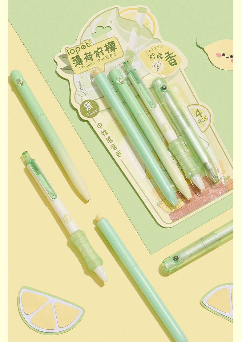LOPET Fragrance Scented Click Gel Pen Set - 0.5mm Black Ink, 16-Pack (mirisi limuna / grejpa / kokosovog mlijeka / kave, po 4 komada)