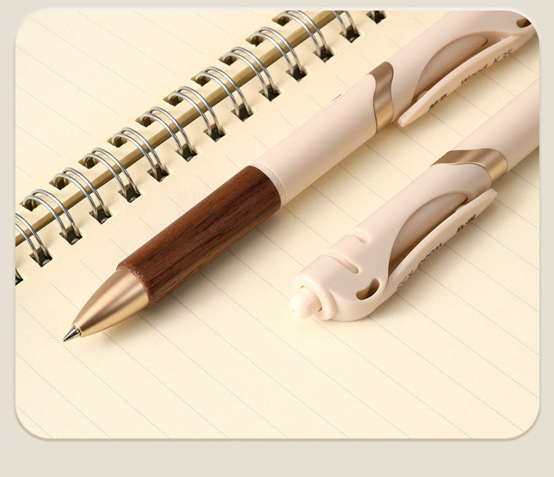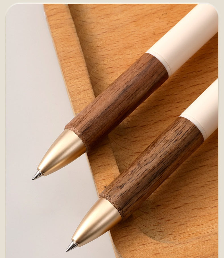 Set izvlačivih gel olovaka M&G K35 od orahovog drva – 0,5 mm crna tinta – Uključuje crno i bijelo kućište (pakiranje od 2 komada)