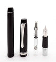 Pilot Heritage 91 nalivpero u crnoj boji tijela sa sjajnim rodijskim ukrasima i 14k zlatnim vrhom presvučenim rodijem te mehanizmom za punjenje uloškom ili pretvaračem.