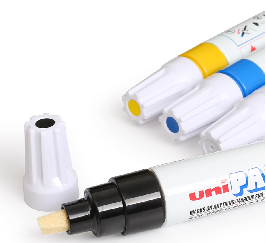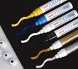 Marker s ventilom piše gotovo na bilo kojoj površini: staklo, metal, drvo, guma, kamen, plastika, papir, vinil, koža, platno i još mnogo toga.